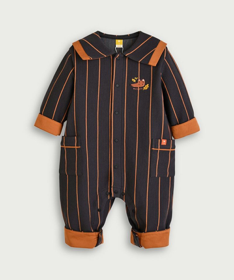【2点セット】フォックスストライプ柄カバーオール&帽子