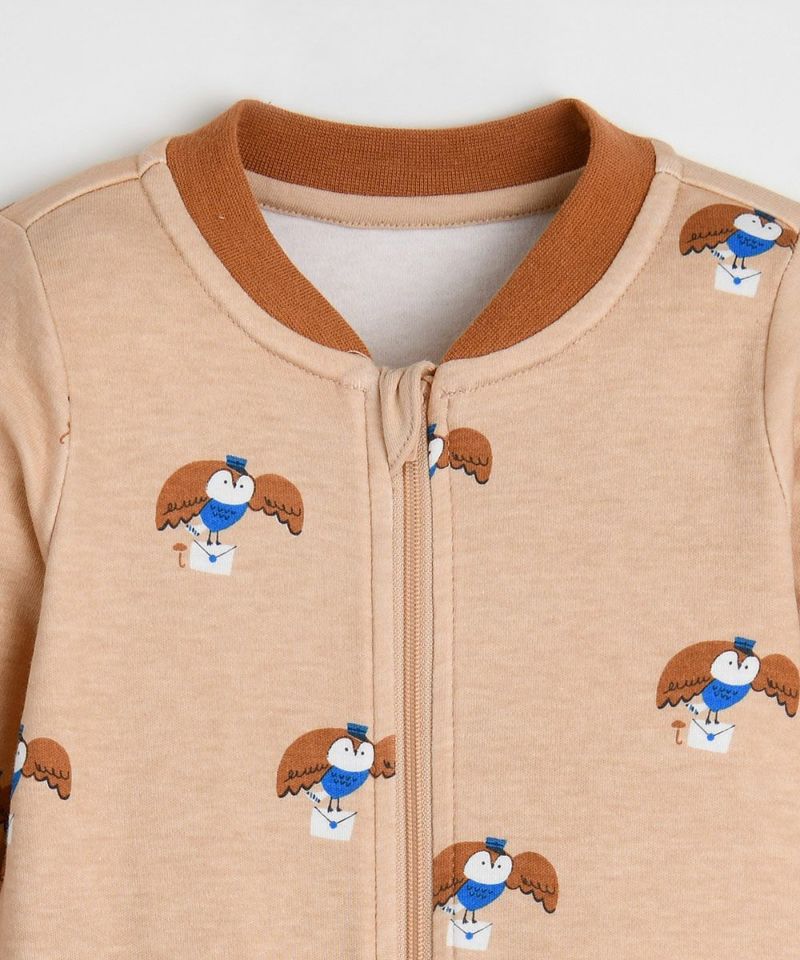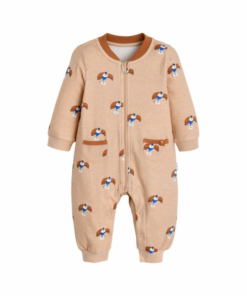 かわいいフクロウ柄のカバーオールと帽子がセットになっているセットアイテム♪ベビーギフトとしても喜ばれるアイテムです。プレゼントにも、【ルームウェア】オルストップス&パンツ(W244NNN22P)と兄弟ルックとしてもおすすめです。