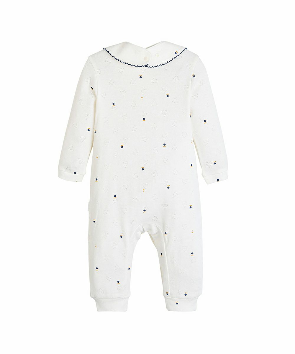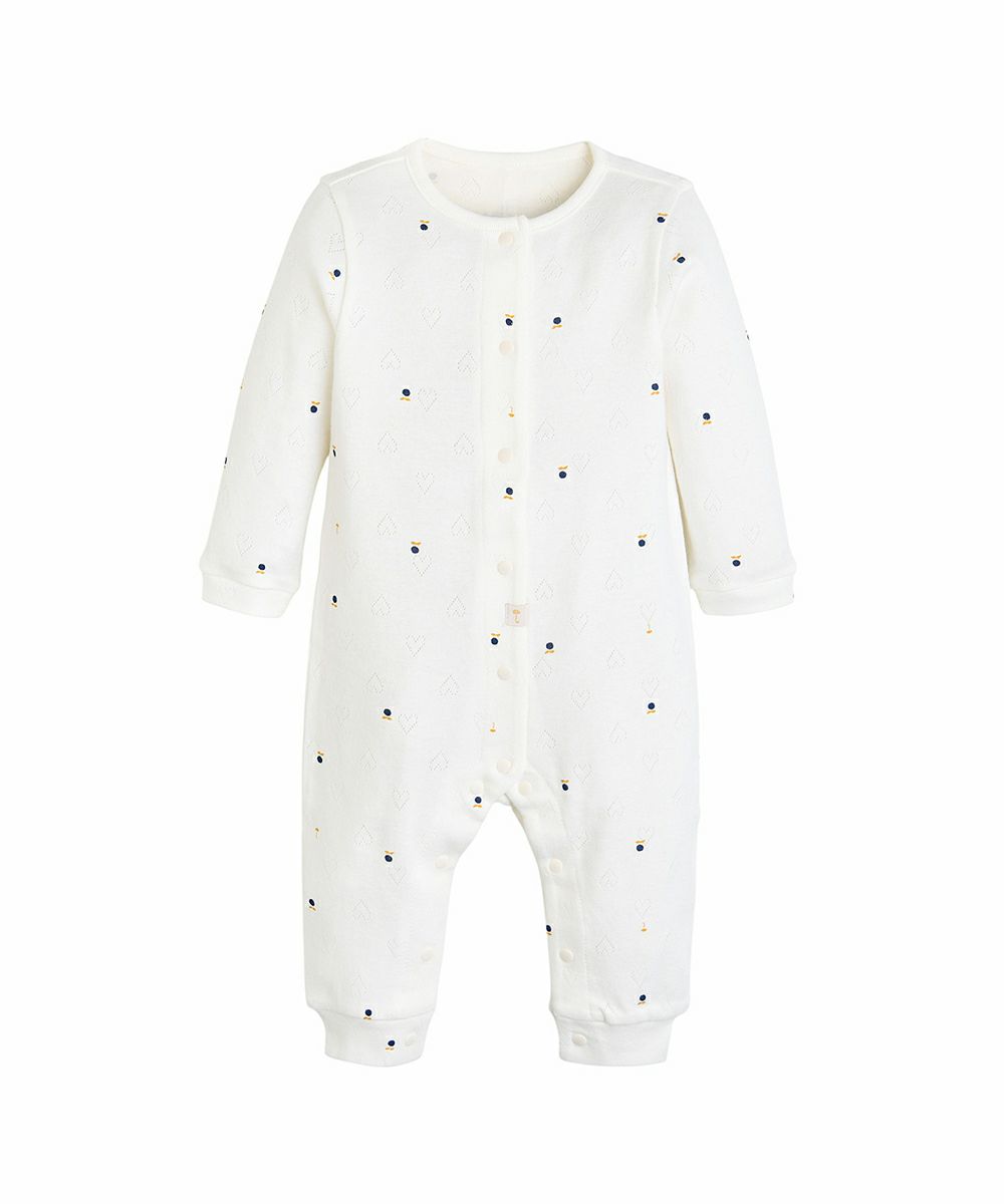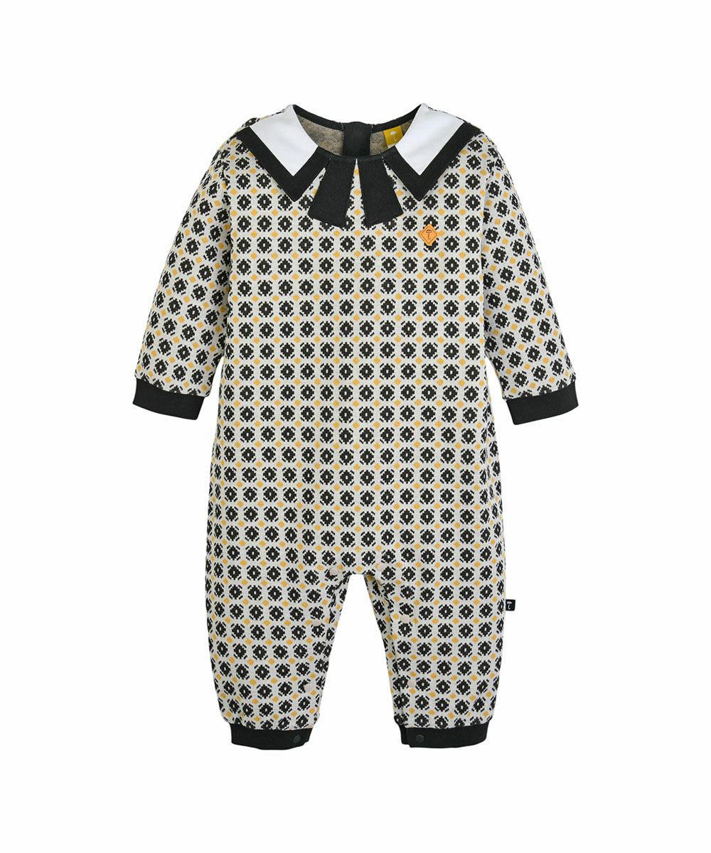【2点セット】ポプリンジャカード長袖カバーオール&帽子
