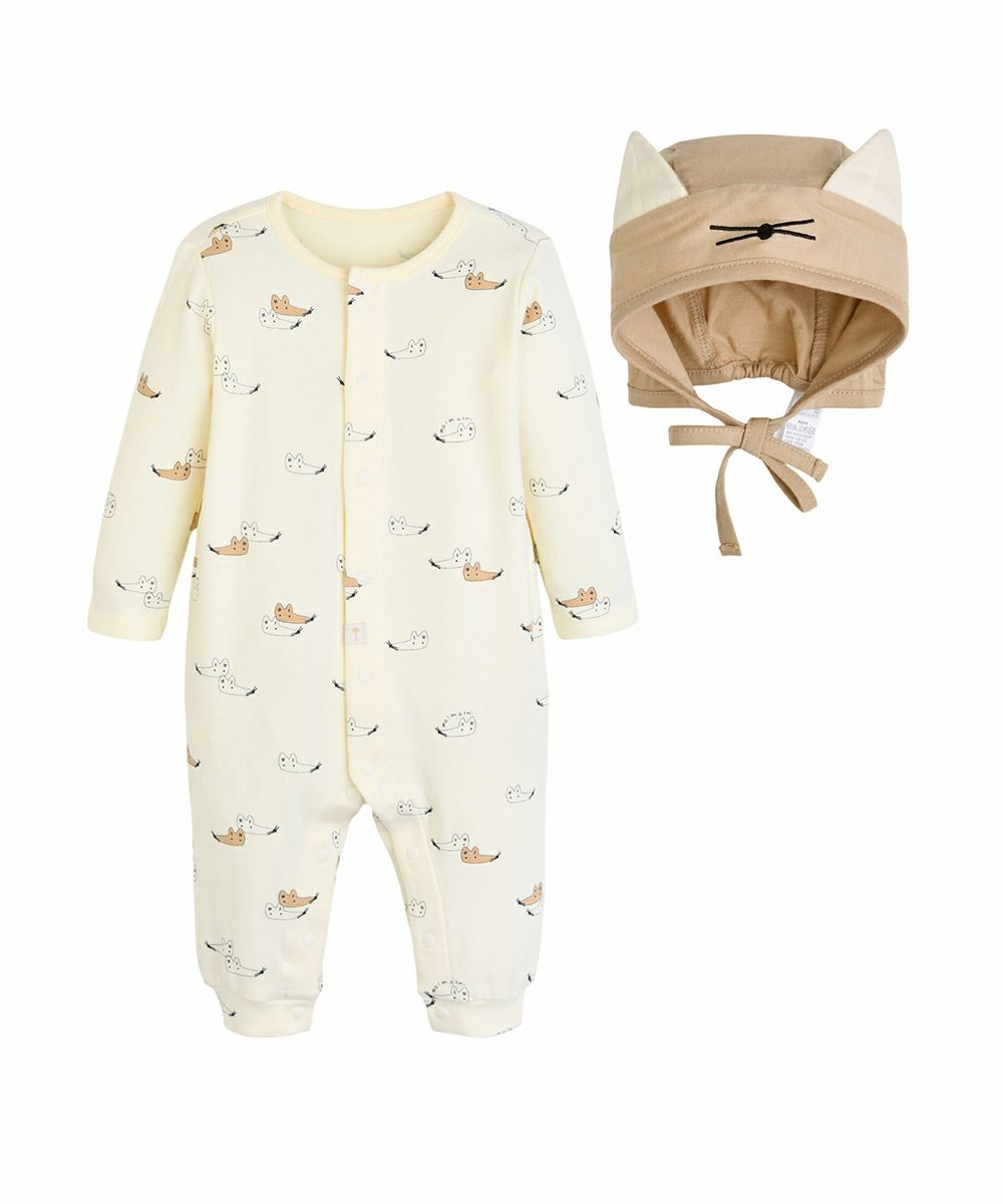 【2点セット】コットンモダールフォックスカバーオール&帽子