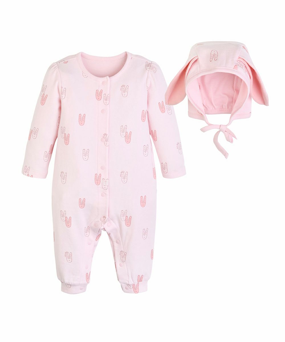 【2点セット】コットンモダールラビットカバーオール&帽子