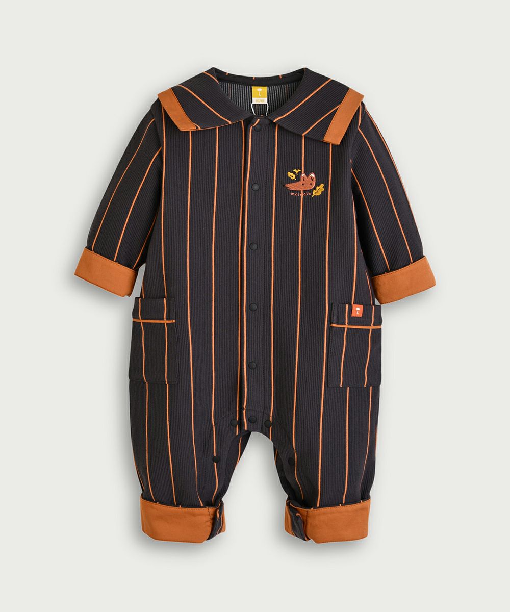 【2点セット】フォックスストライプ柄カバーオール&帽子