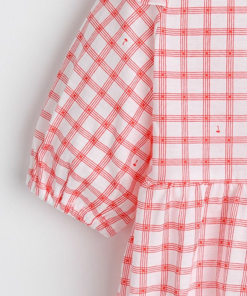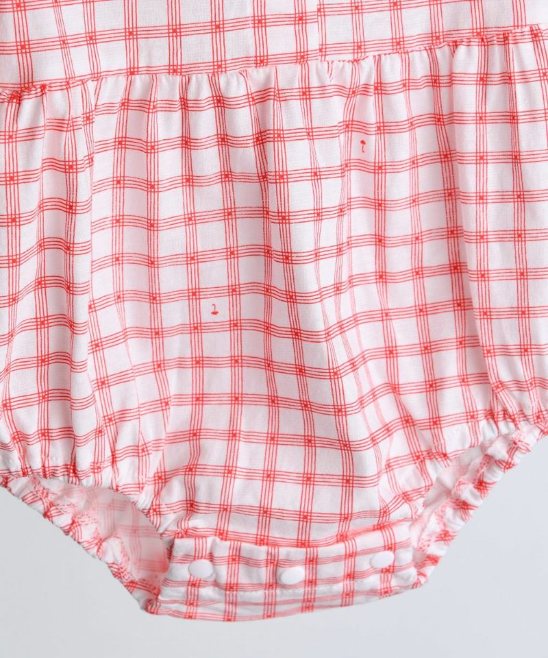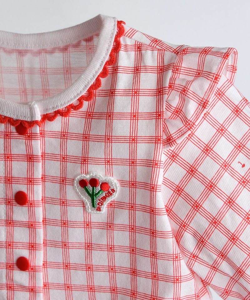 【2点セット】レッドチェック7分袖ロンパース&ヘアバンド
