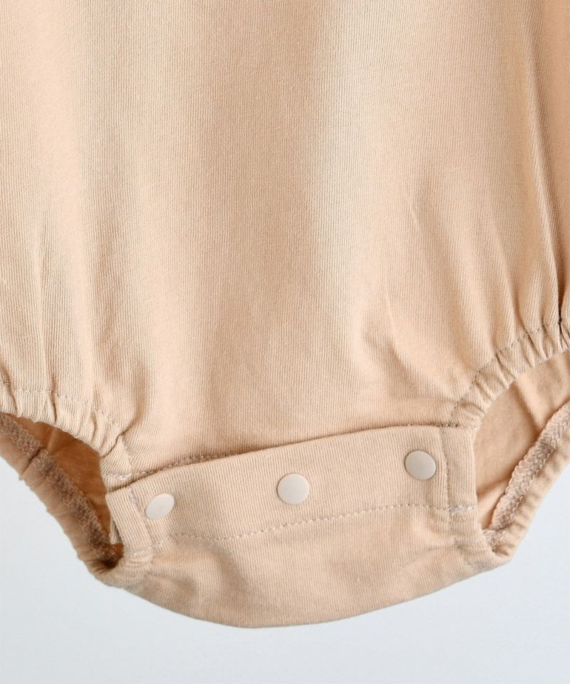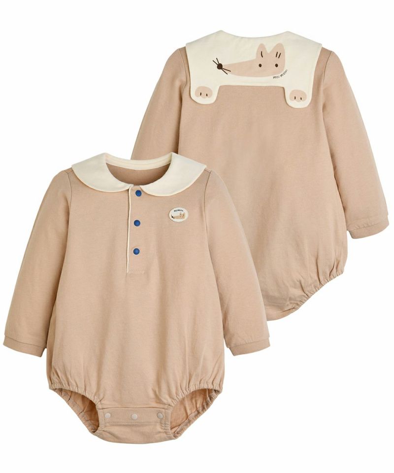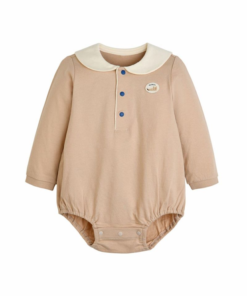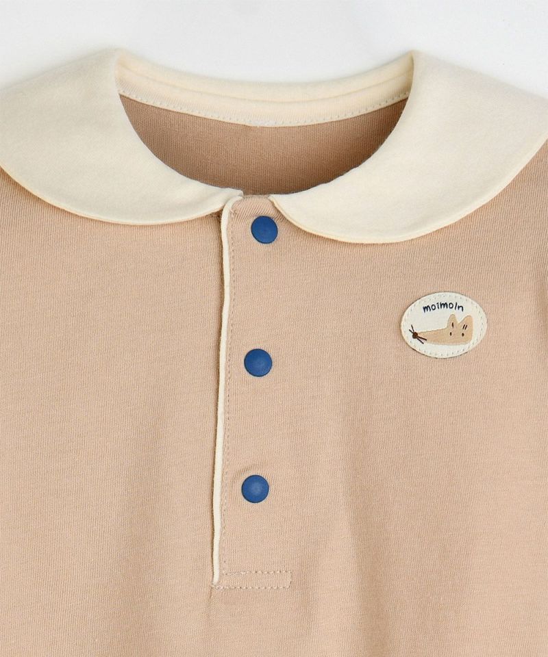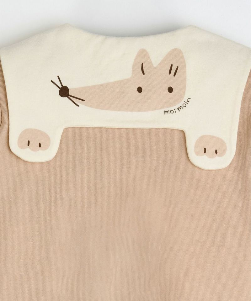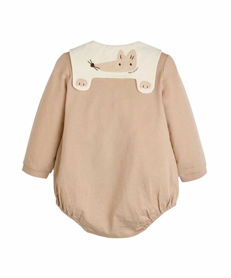 ベージュ×クリームのボディースーツ型の長袖ロンパース。胸元のワンポイントや襟の後ろがかわいいキツネのネロがモチーフとなっており、遊び心もありながらおしゃれも楽しめるmoimolnらしいデザイン。胸元と股下はスナップボタンで大きく開くのでオムツ替えやお着替えも簡単。出産祝いなどのギフトにもおすすめです。仲良しコーデとしてウサギのフォレバージョン(M253BUN06P)もぜひ。