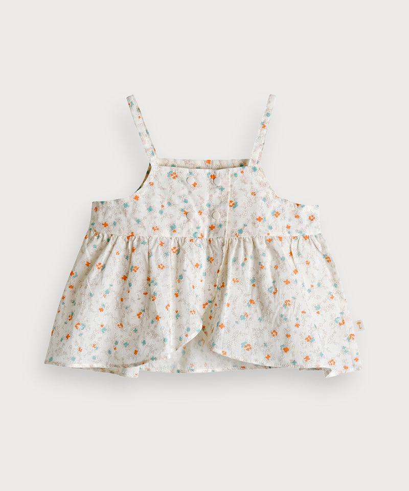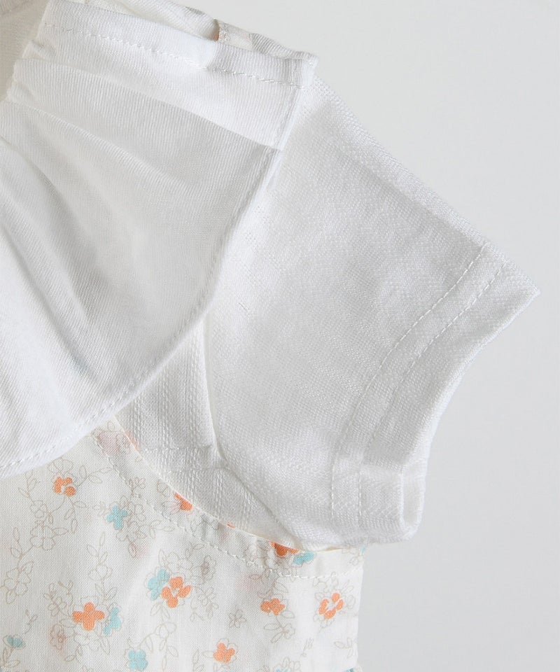 レトロ感あるフラワー総柄キャミソールと無地半袖ボディスーツのセット。