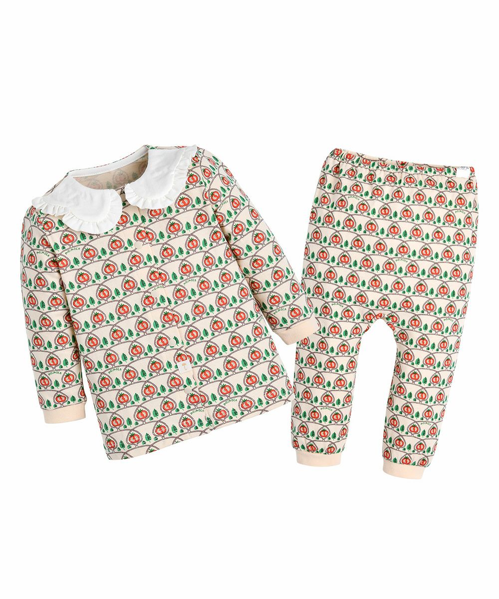 【ルームウェア】ビッグベアダブルフェイス長袖トップス&総柄パンツ
