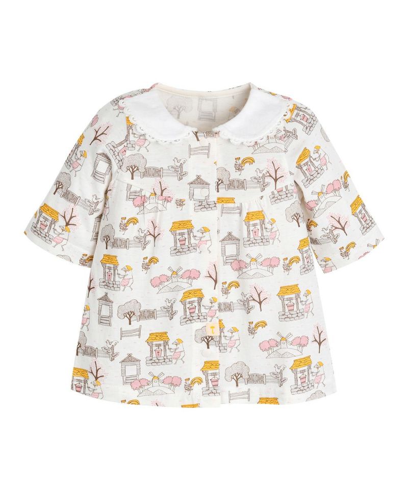 抗菌·消臭効果が優れた柔らかいバンブー素材で牧場の羊柄とホワイトカラーレース衿がポイントの7分丈 ルームウェアです。