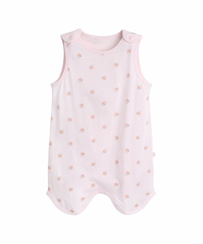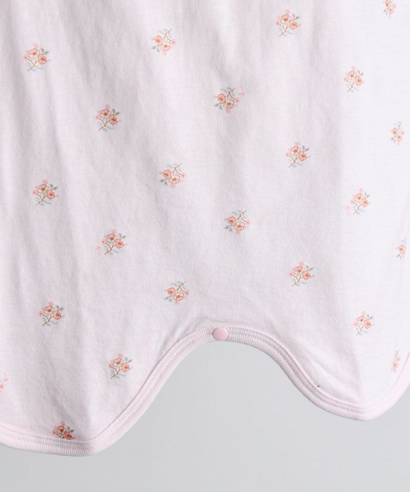 ピンクベースに同系色の花がプリントされたスリーパー。お子様の就寝時の冷え防止になるスリーパーは着心地の良さも重視しています。伸縮性に優れた生地を使用して、両肩と股部分にスナップボタンで脱着もスムーズに。
