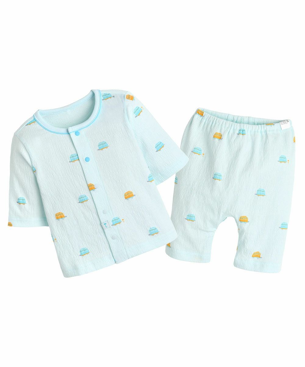 【2点セット】7分袖Tシャツ&幾何学柄カバーオール