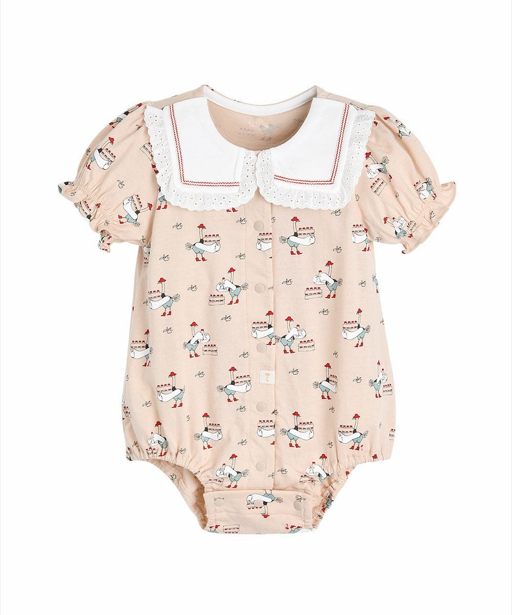 【モダールコットン】ダチョウ柄半袖ロンパース