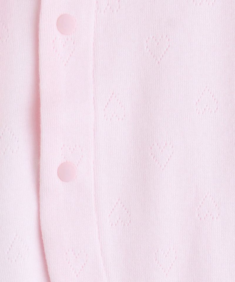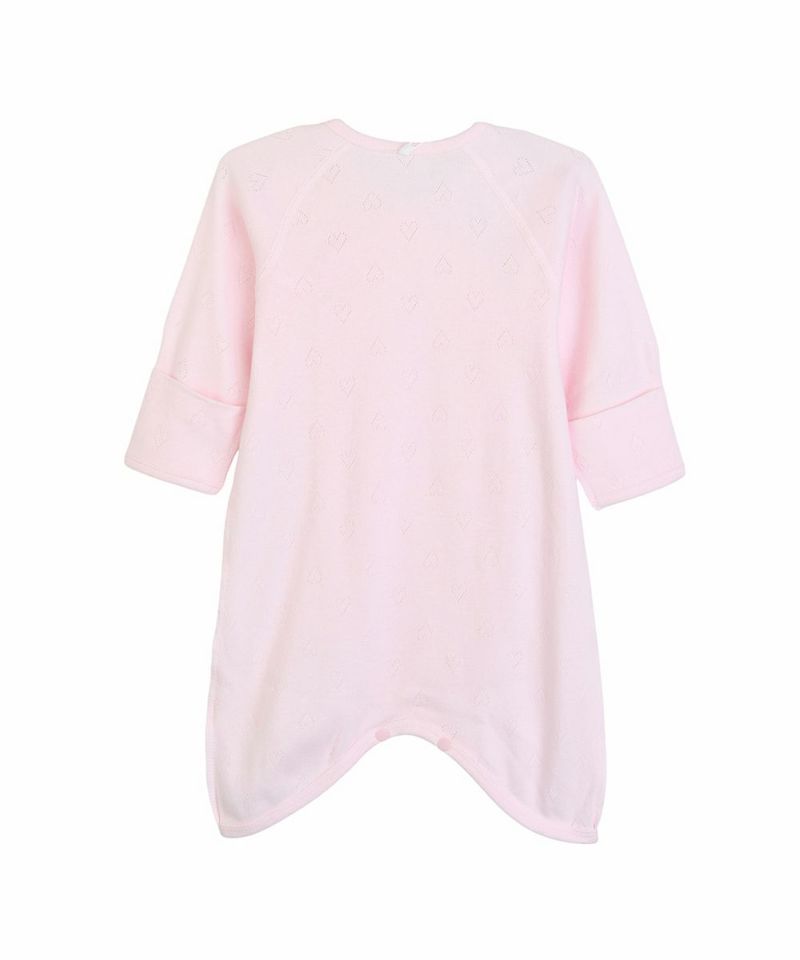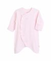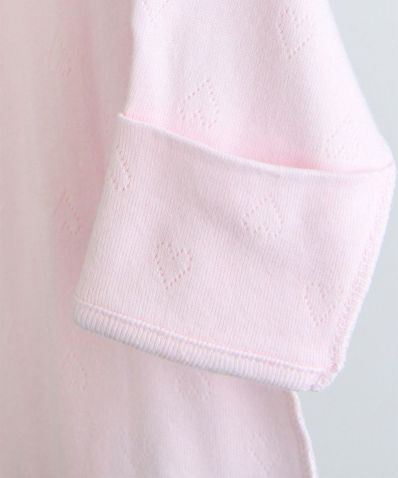 ピンクのハートのアイレット生地に胸元のハートのワンポイントがかわいいコンビ長肌着。外側は簡単なスナップタイプで着替えのしやすい仕様に加え、脇の縫い目は肌に触れない外縫い仕様なので、赤ちゃんの薄い皮膚にもやさしい肌あたりとなっています。袖口は折り返すと引っかき防止のミトン代わりとなる仕様で、出産祝いなどのギフトにもおすすめです。minimoiとは・・・新生児のための新しいmoimolnのオリジナルシリーズ。