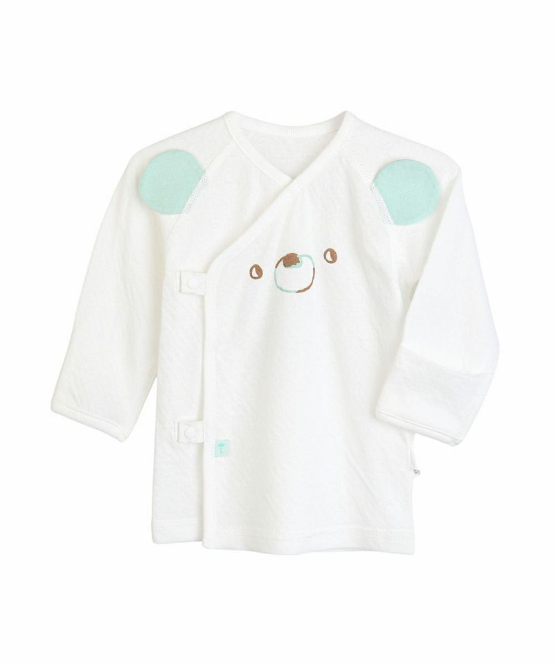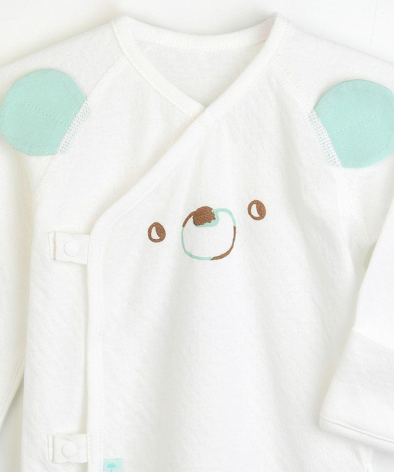繊細な表面縫製で赤ちゃんの肌をより柔らかく包み込んでくれる新生児用の短肌着。クマのデリック(derick)のプリントと立体の両耳が愛らしい雰囲気を漂わせてくれます。内側も外側もスナップタイプでお着替え簡単、肌当たりもやさしく、脇などの縫い目は肌に触れない外縫い仕様です。コットン素材の商品は、着心地・肌へのやさしさ・快適性に優れた、毎日着たくなる安心素材です。赤ちゃんのデイリーウェアとしてはもちろん、ギフトにもおすすめの商品です。