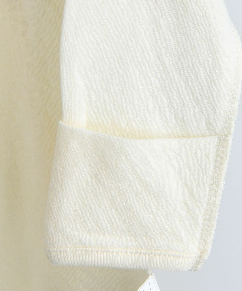 繊細な表面縫製で赤ちゃんの肌をより柔らかく包み込んでくれる新生児用の短肌着。ネコのミャオ(meow)プリントと立体の両耳が愛らしい雰囲気を漂わせてくれます。内側も外側もスナップタイプでお着替え簡単、肌当たりもやさしく、脇などの縫い目は肌に触れない外縫い仕様です。コットン素材の商品は、着心地・肌へのやさしさ・快適性に優れた、毎日着たくなる安心素材です。赤ちゃんのデイリーウェアとしてはもちろん、ギフトにもおすすめの商品です。