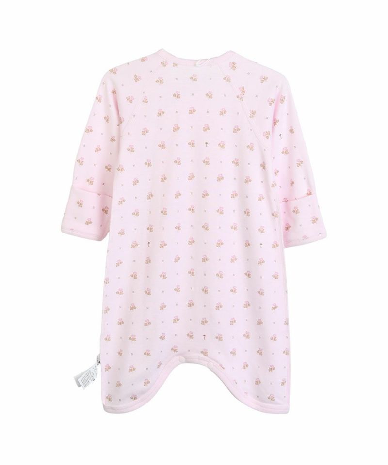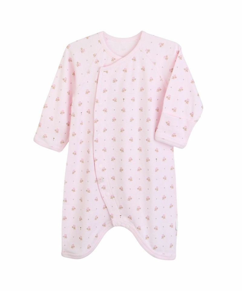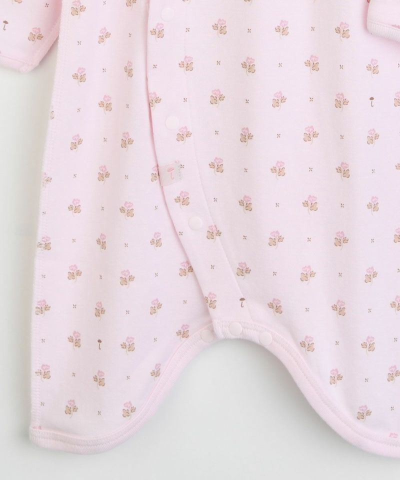 吸湿性にも優れ、素肌にやさしい滑らかな肌ざわりが特徴のレーヨン生地を使用した長袖コンビ肌着。ピンクベースに同系色の小花が全体にプリントされ、とてもラブリー。フロントから股部分は、スナップボタンでお着替えが簡単、肌当たりもやさしく、脇などの縫い目は肌に触れない外縫い仕様です。赤ちゃんのデイリーウェアとしてはもちろん、ギフトにもおすすめの商品です。同柄の生地でカバーオール(M254UUN12P)もございます。