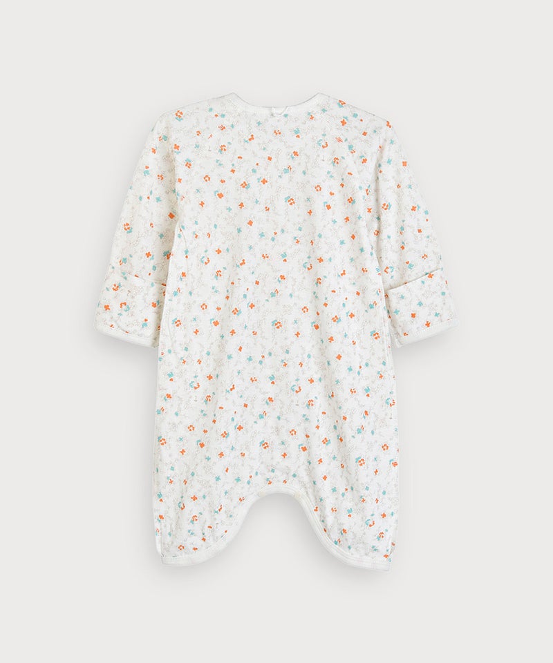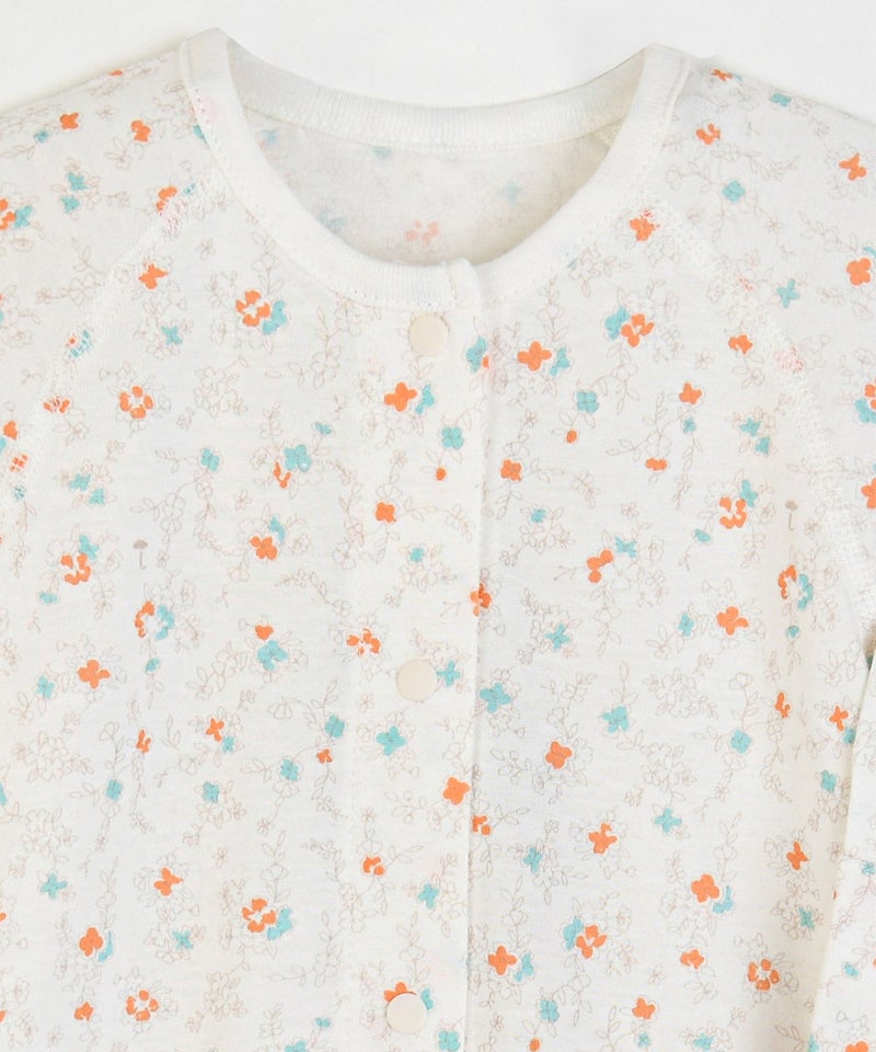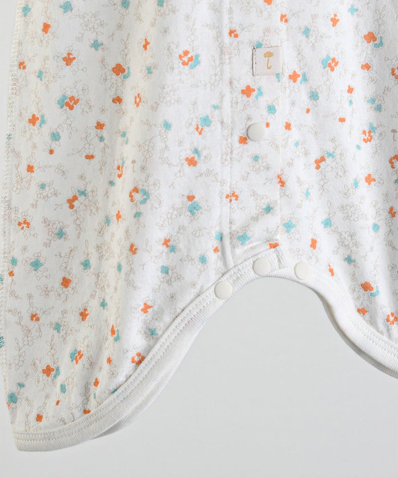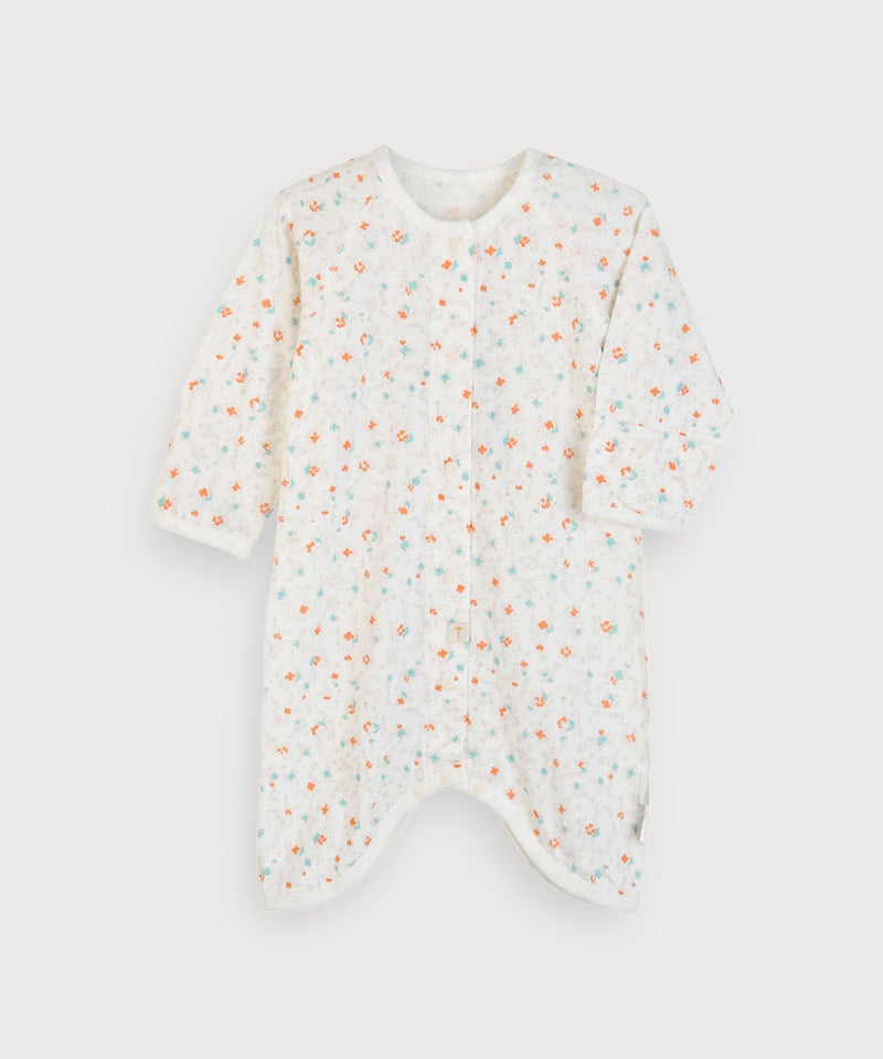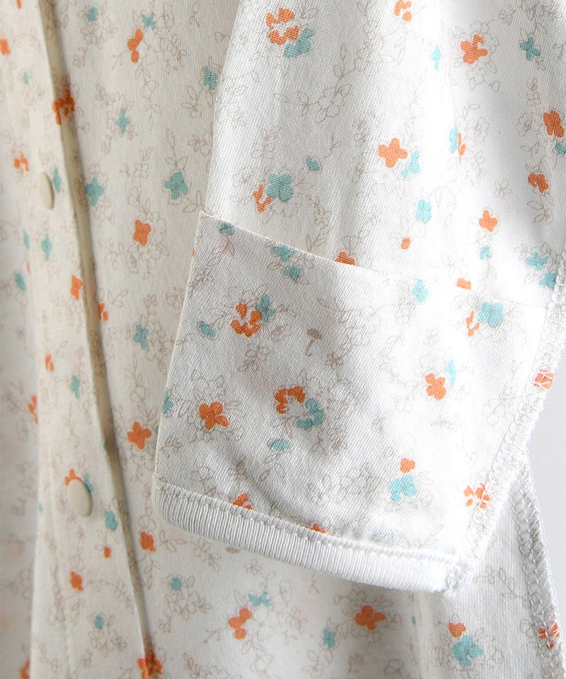 レトロ感あるフラワー総柄プリントの長袖コンビ肌着。
