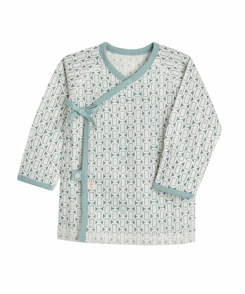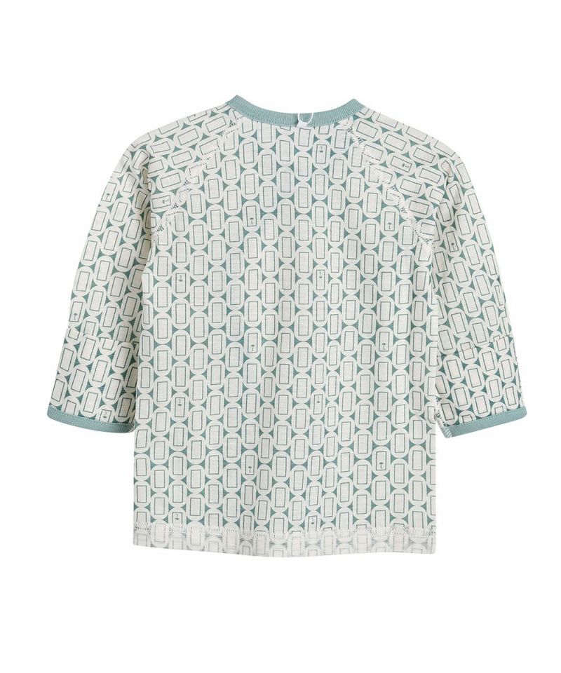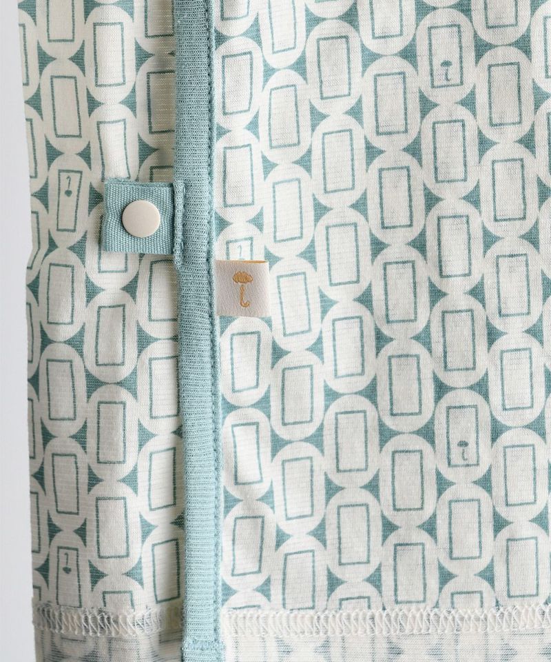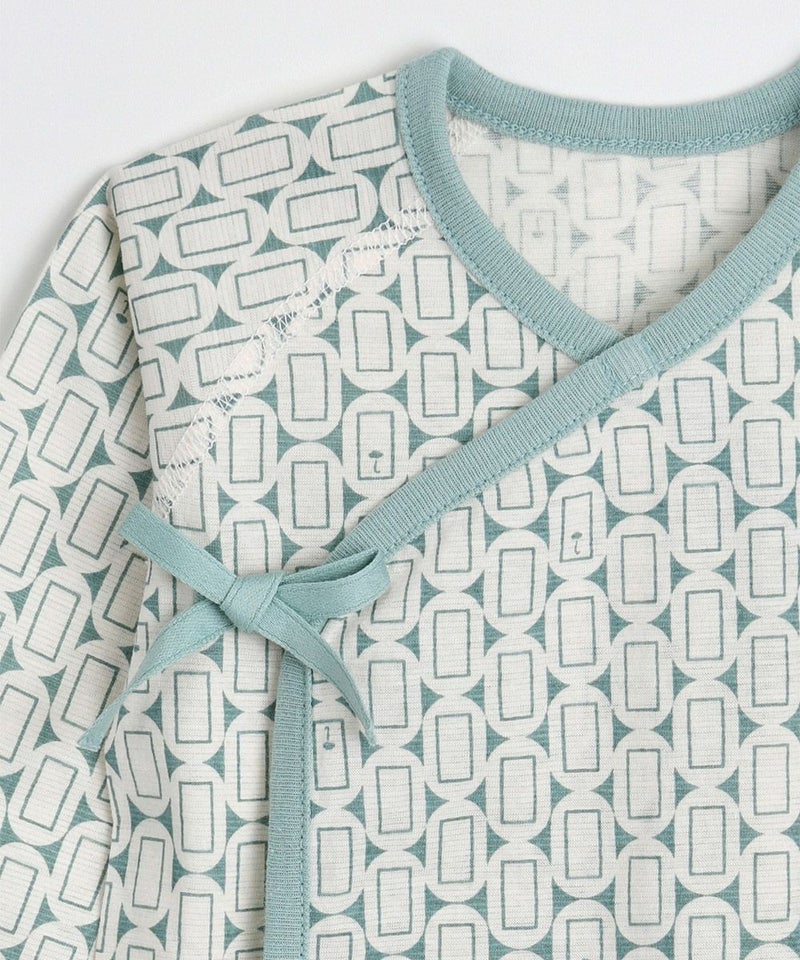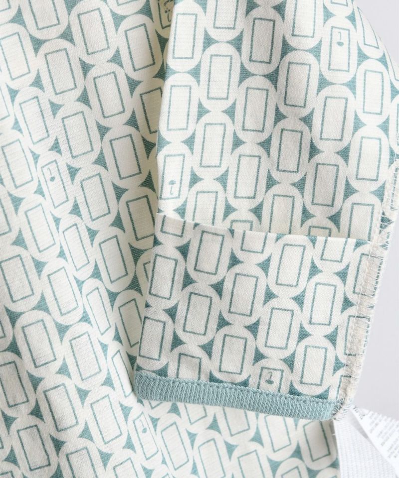 すっきりした感じの四角幾何学の柄とミントカラーの配色がポイントの肌着です。