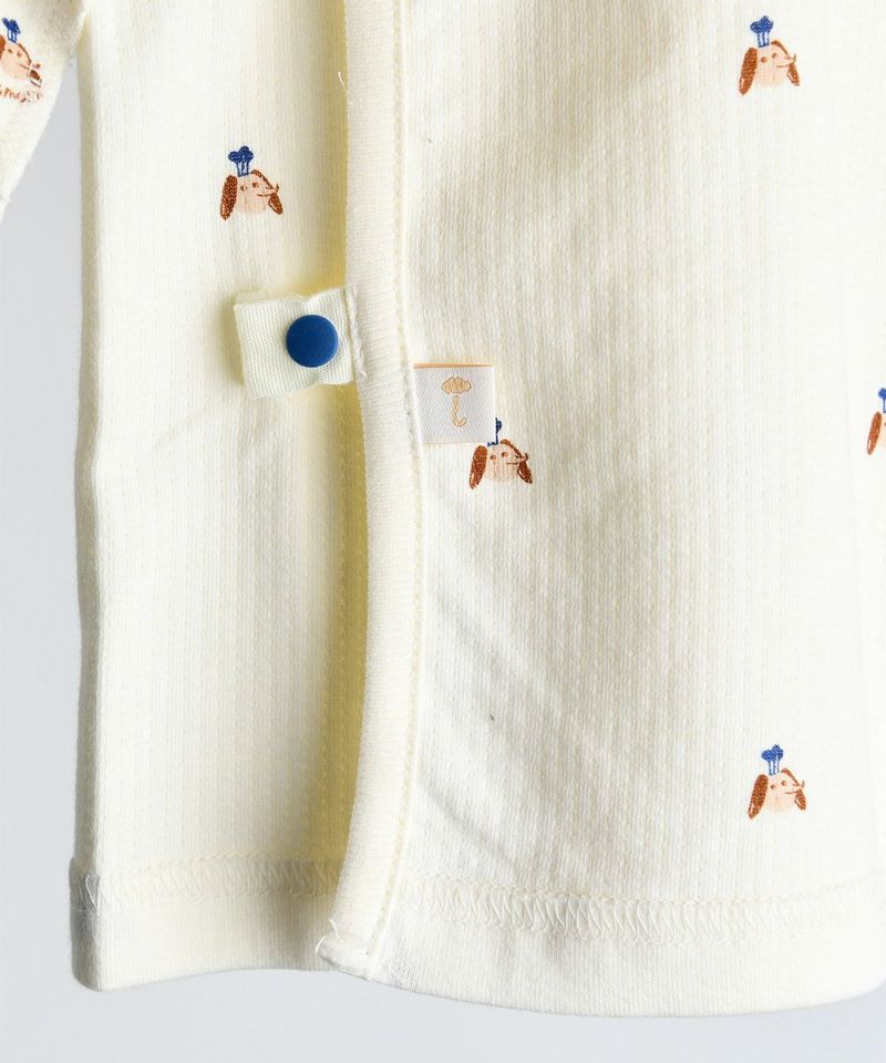ユニークな犬のモチーフがポイントの短肌着。素材にもデザイン性にもこだわっているため、何枚持っていても重宝するアイテムです。