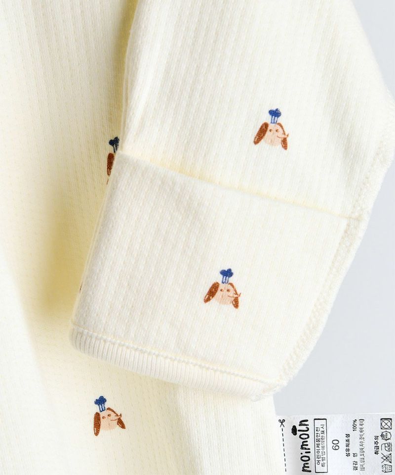ユニークな犬のモチーフがポイントの短肌着。素材にもデザイン性にもこだわっているため、何枚持っていても重宝するアイテムです。