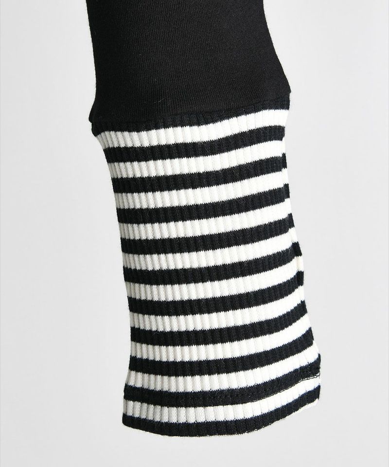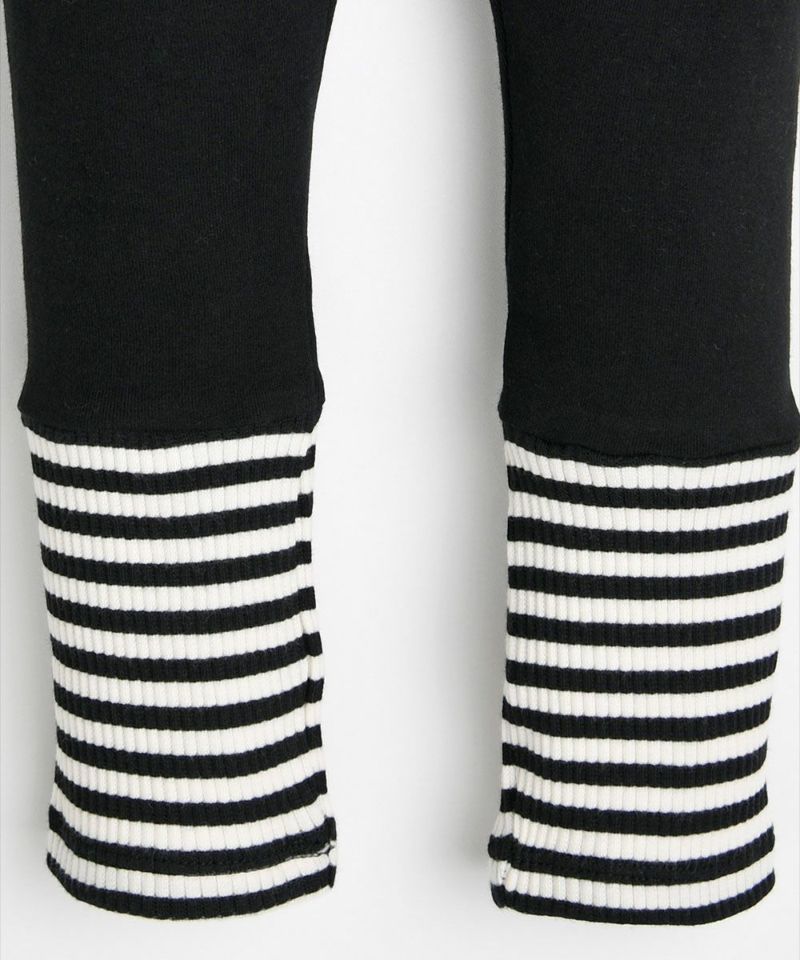 シンプルだけどおしゃれなストライプとリブ配色レギンス。丈夫で楽なデザインで、マルチコーディネートに活用しやすいアイテム。【SOFT&】グラントップス (M251TSF04P)とコーディネートがおすすめです。