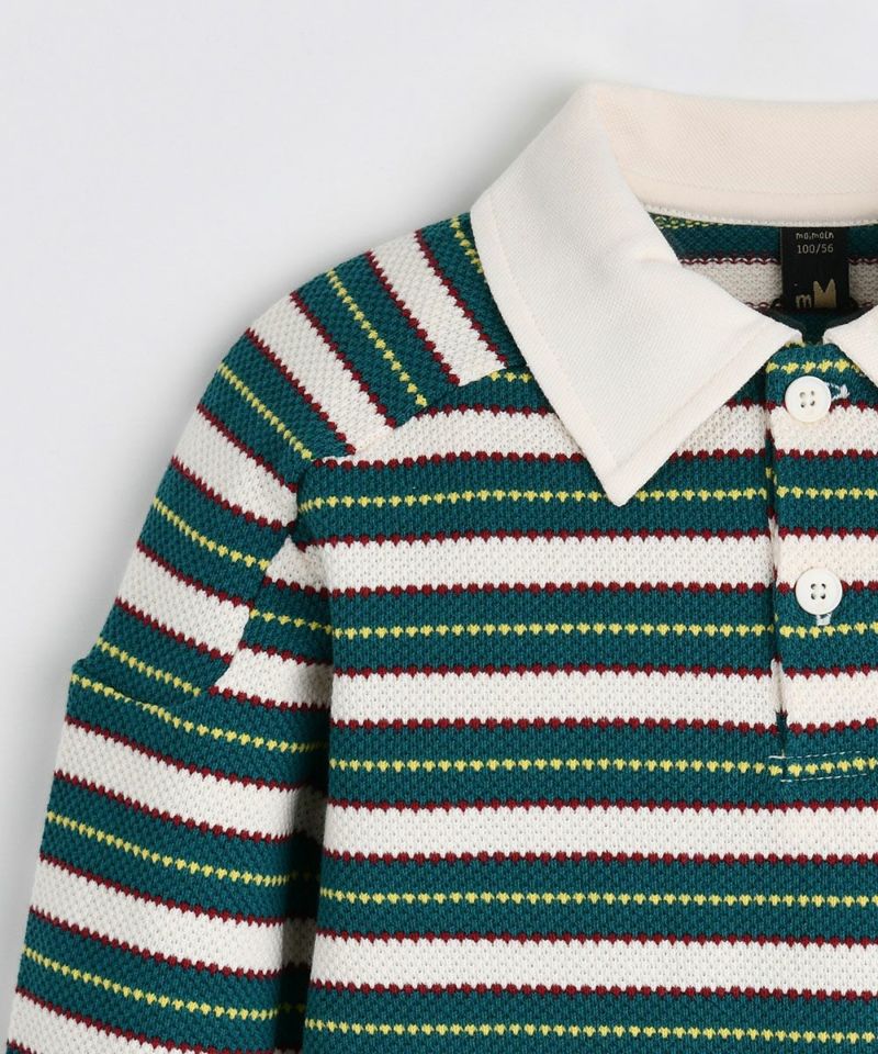 マルチカラーのワッフルストライプ素材が上品なトップス。ホワイトカラーを組み合わせることで、端正な雰囲気になり、程よい厚みが魅力のアイテムです。