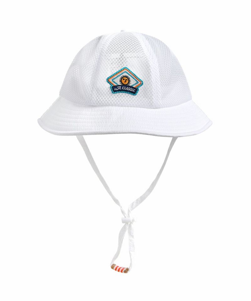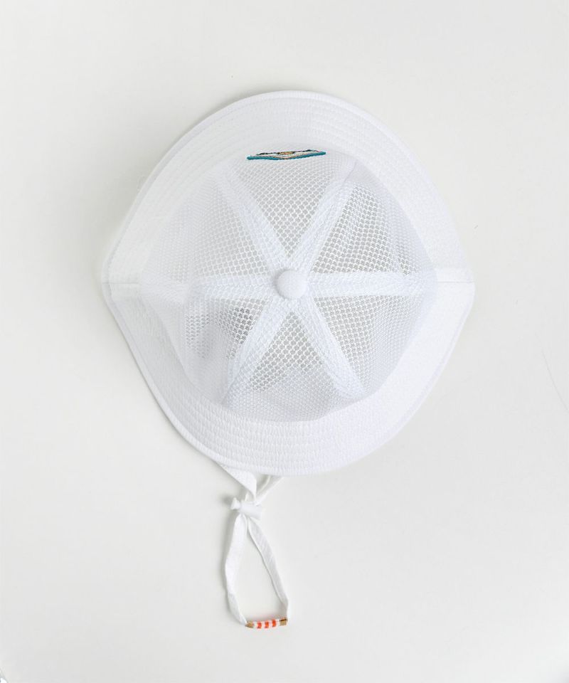 帽子全体がメッシュでデザインされ、被り心地のよいバケットハット。通気性がよく、基本ホワイトカラーなので色々なコーディネートが楽しめるアイテムです。