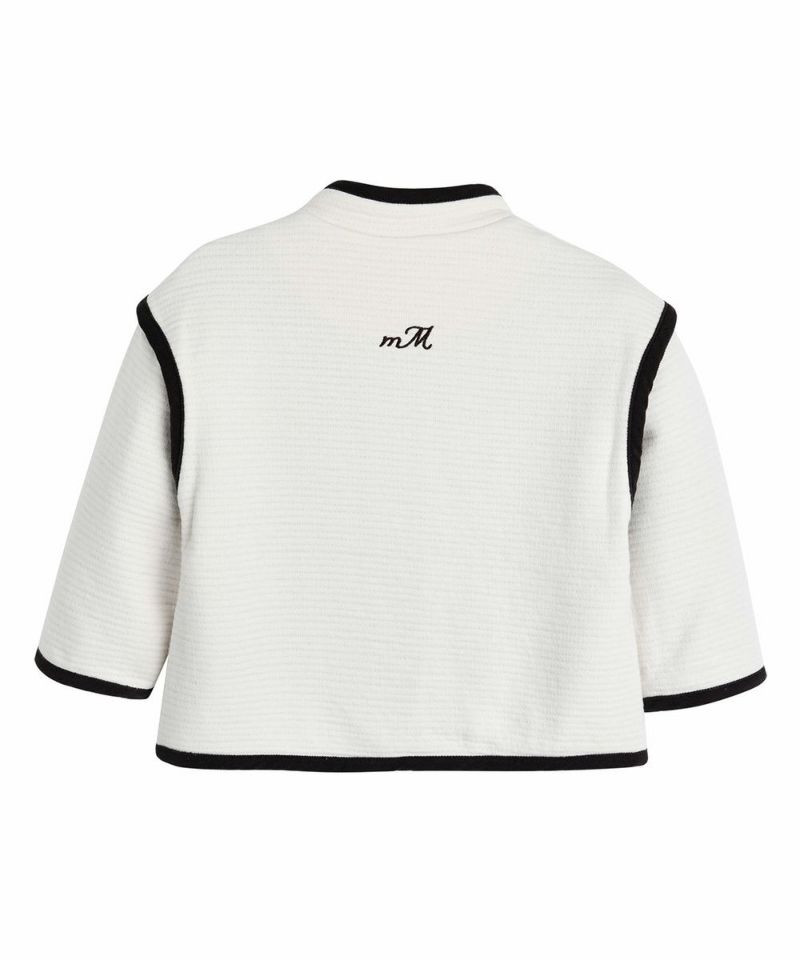 アイボリーカラーのジャンパー。ポケットの刺繍、パイピングの配色、背面のロゴ刺繍がポイント。季節の変わり目から初冬まで、幅広く着用できるアイテムです。