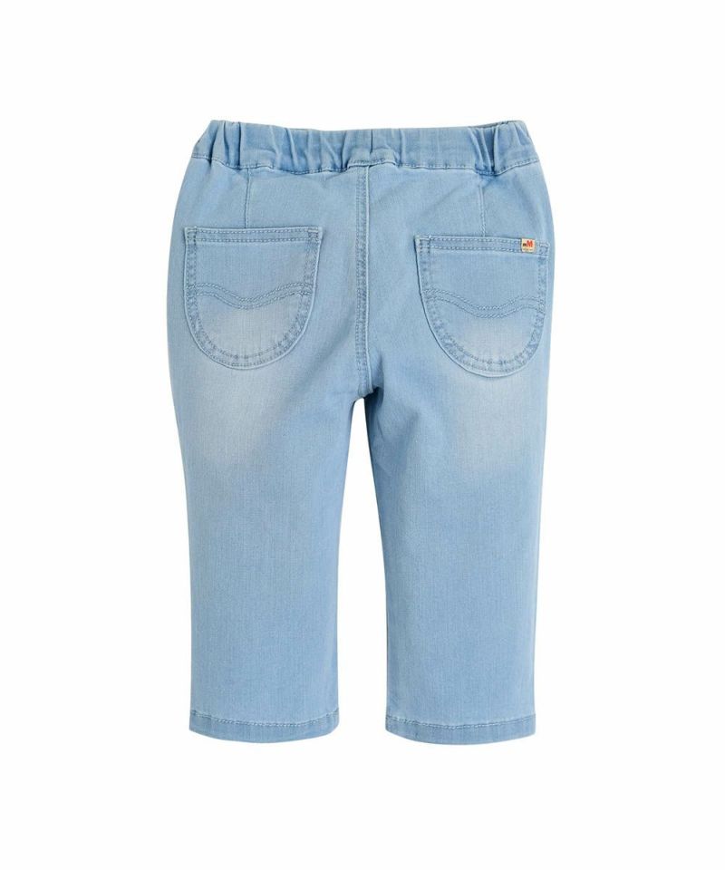 ポケットディテールがユニークなライトデニム8分丈パンツ。かわいいイチゴの刺繍がポイントになり、薄手でストレッチがきいていて履き心地よく、マルチコーデに使いやすいアイテムです。