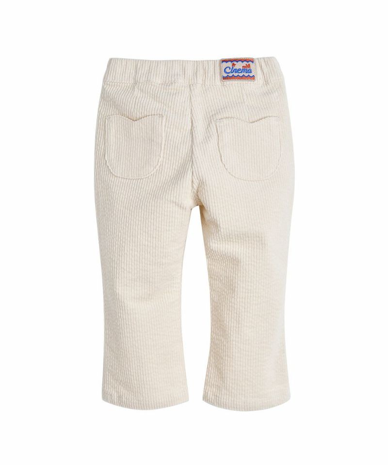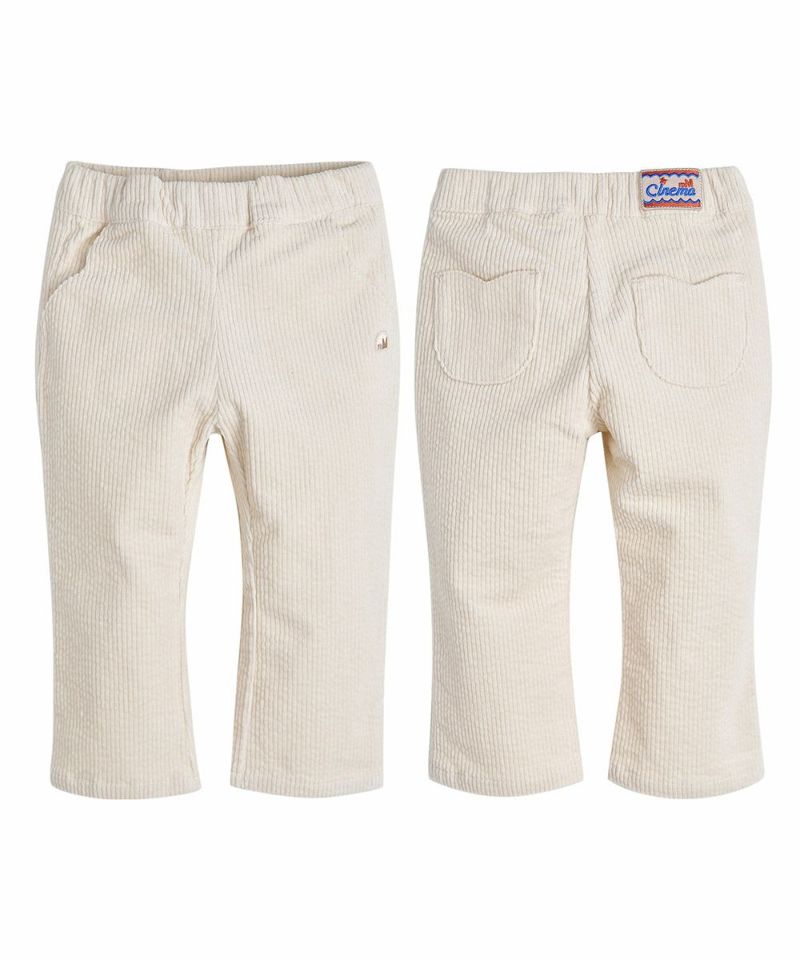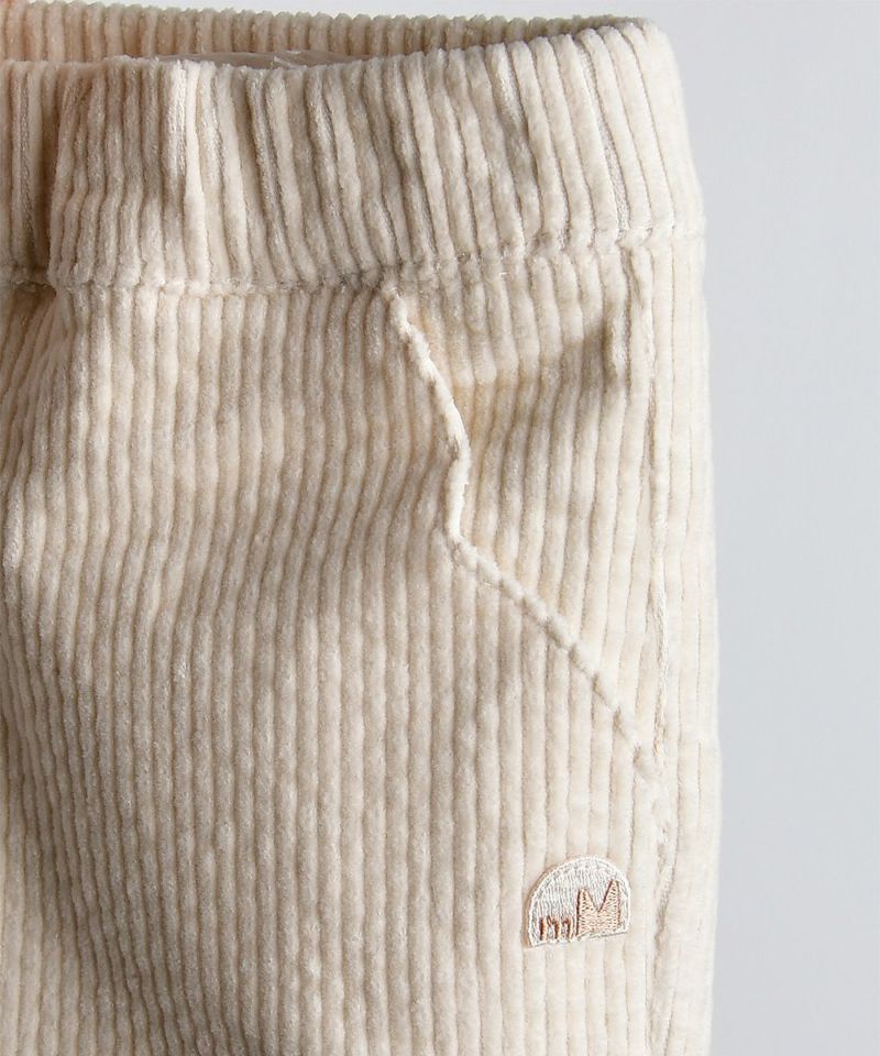 柔らかいコーデュロイ素材にセミベルボトムラインのパンツ。伸縮性の良い素材とソフトなクリームカラーで様々なスタイリングが可能なアイテムです。