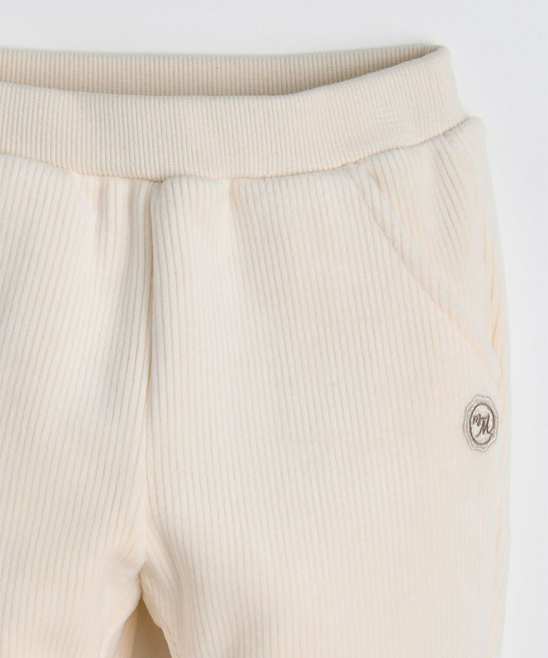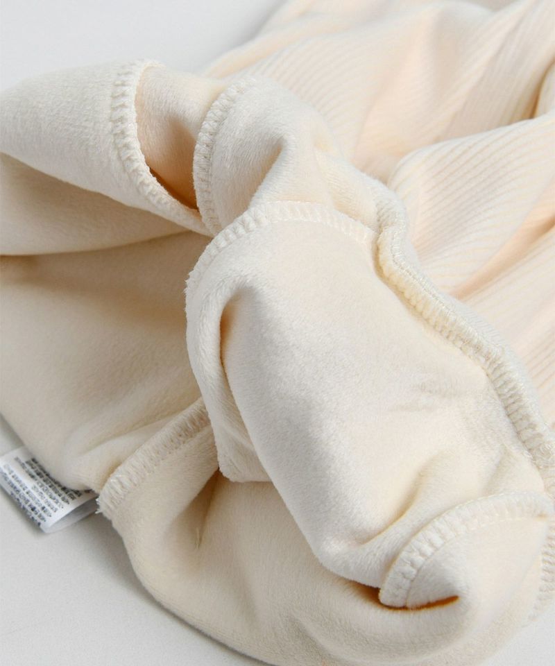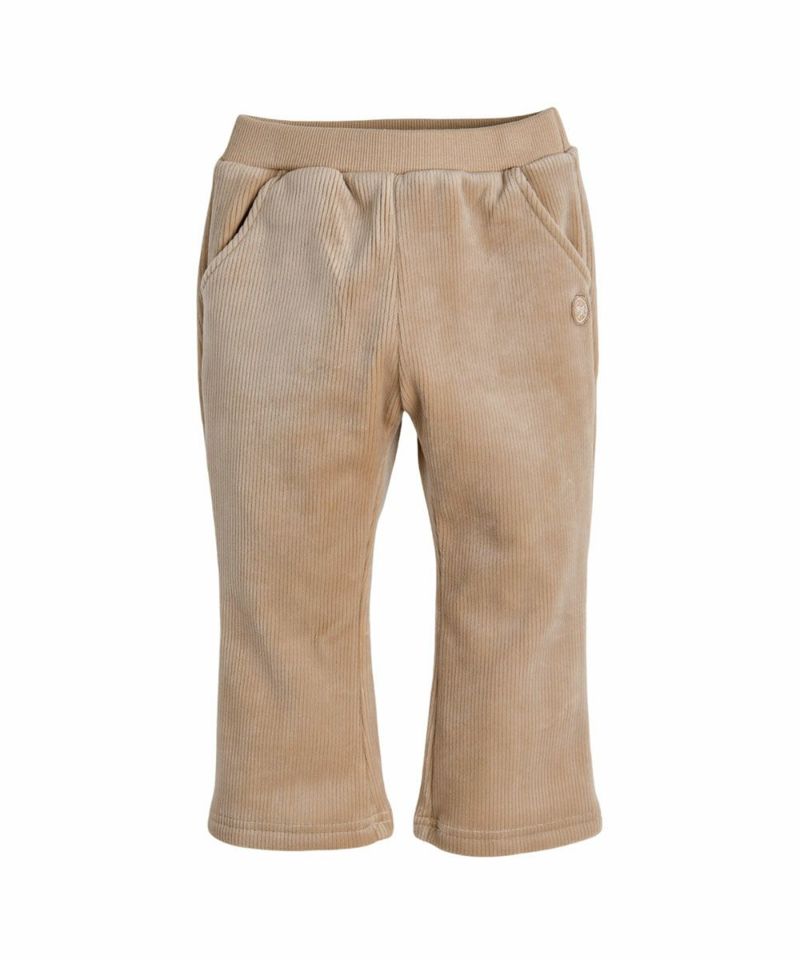 柔らかいベロア素材に、裏地が起毛のブーツカットパンツ。柔らかな肌触りで着心地が良く、シンプルながらもコーディネートしやすいアイテムです。