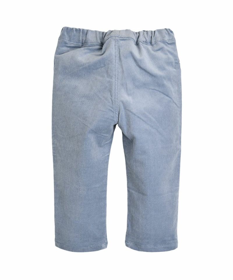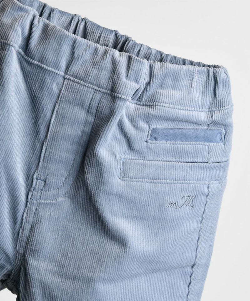 ゆったりとしたストレートフィットのコーデュロイパンツ。小さな飾りポケットがユニークで、シンプルなブルーカラーなので、マルチコーディネートしやすいアイテムです。