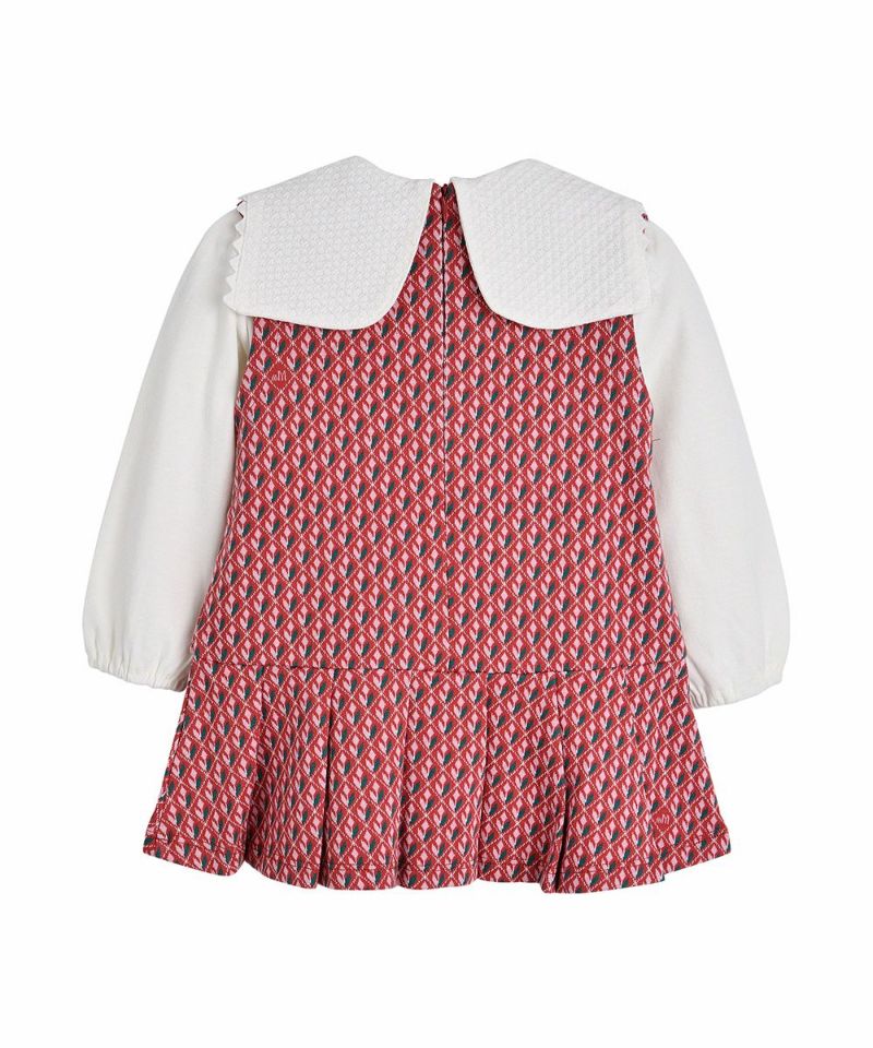 穏やかなフラワーとチェックが組み合わされたジャカードレイヤードワンピース。膝上丈で、動きやすいデザインのアイテム。襟付きTシャツとレイヤードされたデザインが端正で上品な雰囲気を演出してくれるアイテムです。