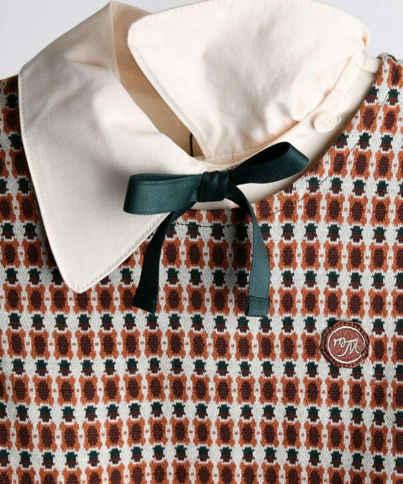 柔らかい素材の襟付Tシャツとクラシックな雰囲気のジャカードジャンパースカートセット。取り外し可能なリボンタイがセット。ギフト用にも喜んでいただけるアイテムです。【セットアップ】ダニエルトップス&5分丈パンツ(W243STG16P)との兄妹ルックもおすすめです。