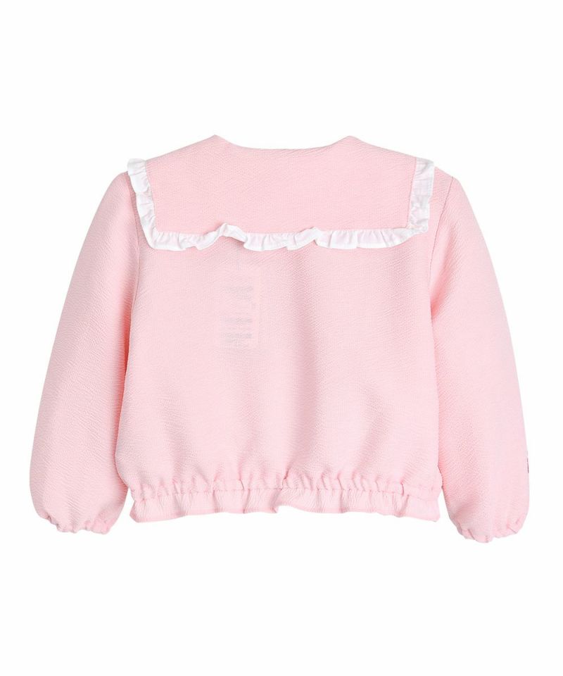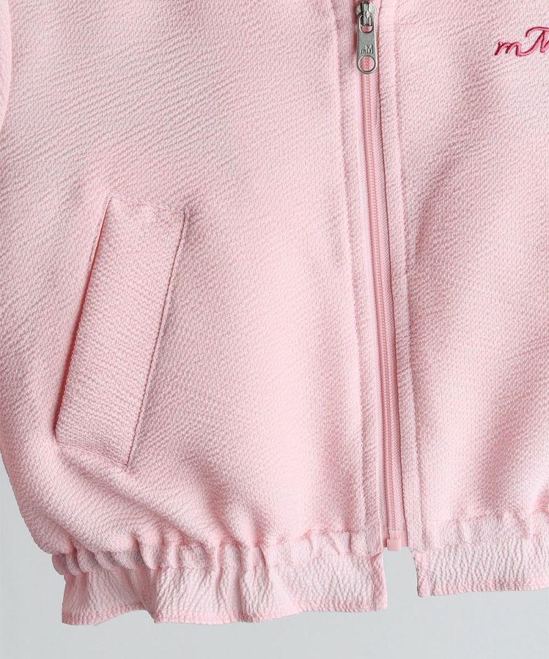 クールなタッチ感のジャンパー。フリル付きの襟とフラワーの刺繍がポイントで、セミクロップ丈のラブリーなアイテム。ページキュロットパンツ(W242PTG41P)とセットアップコーディネートがおすすめです。