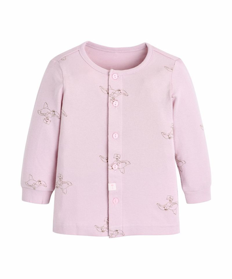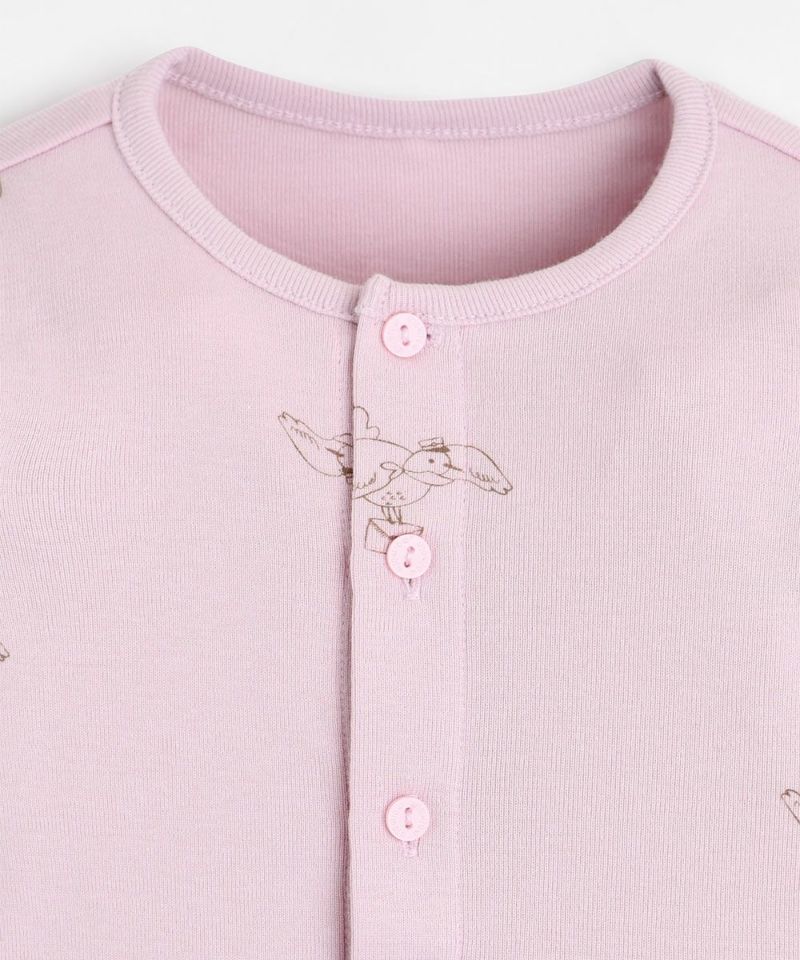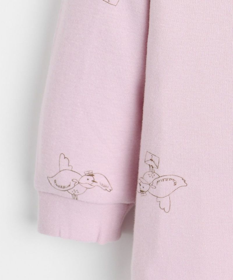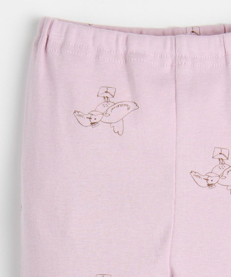パープルカラーにユニークな鳩のグラフィックがプリントされたルームウェア。プレゼントとしても喜ばれるアイテムです。