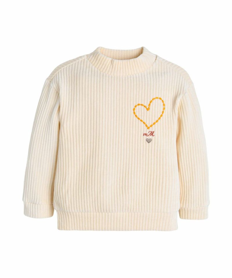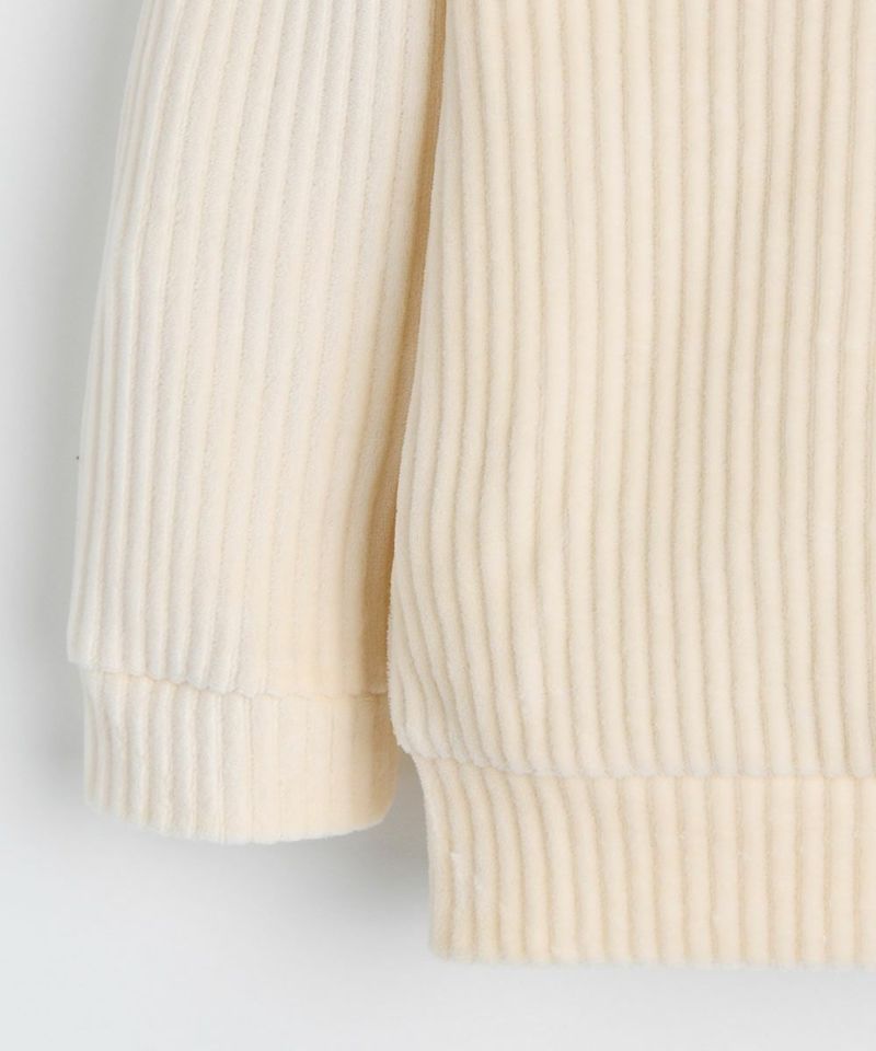 柔らかなタッチ感のベロアセットアップ。かわいらしいハート刺繍がポイントで、パンツはブーツカットシルエット。マッシュルームリバーシブルベスト(W244VEG31P)とのコーディネートがおすすめです。