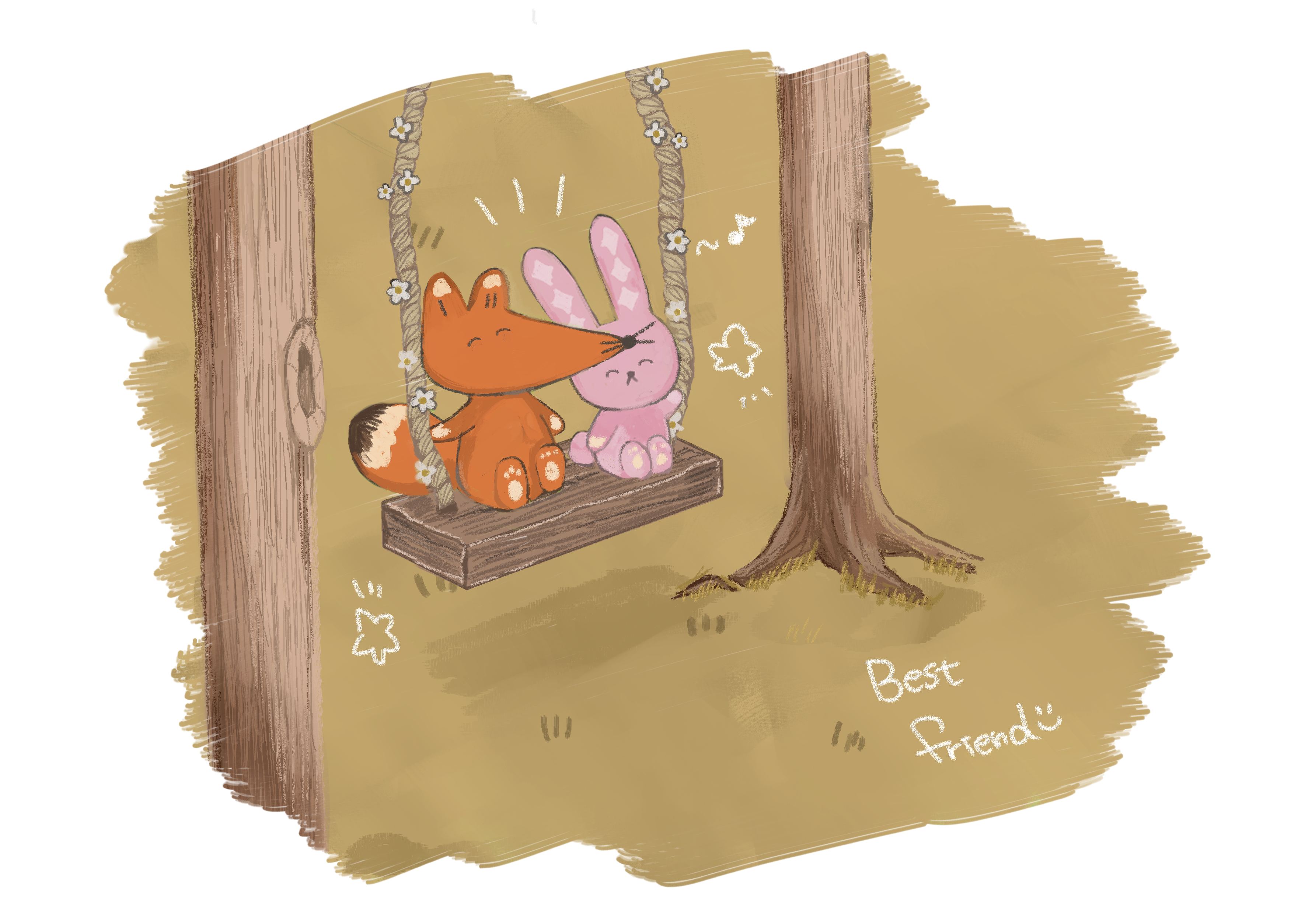 なかなおりした ふたりで つくったものは にじのように きらきらで みとれてしまう ブランコ。