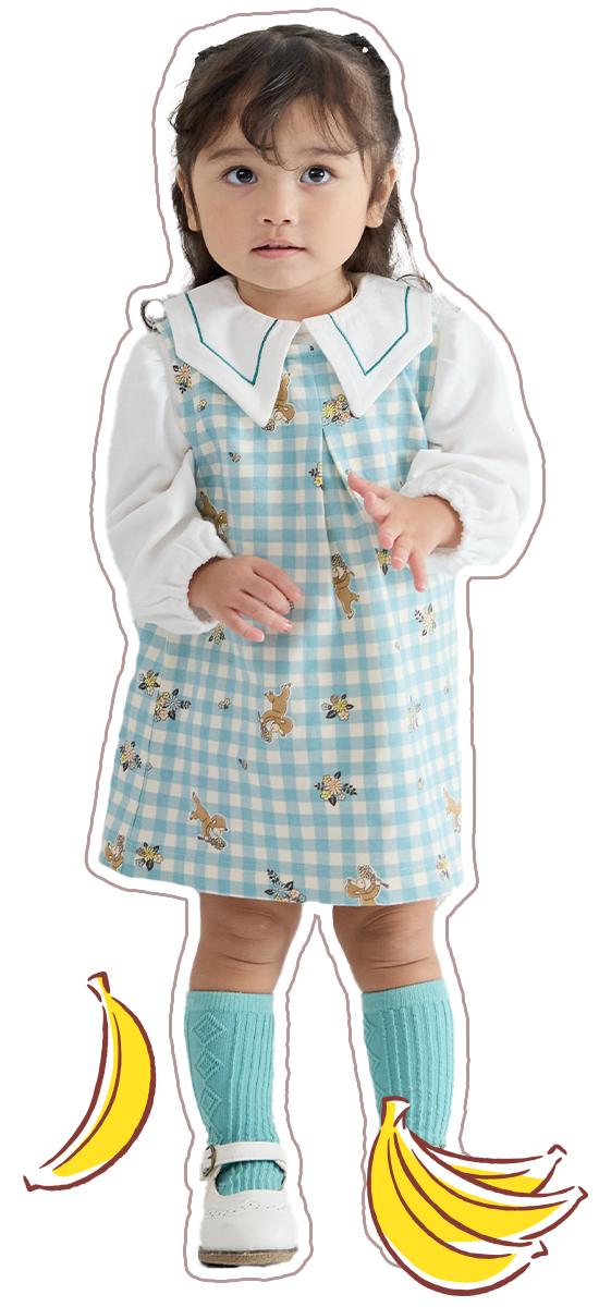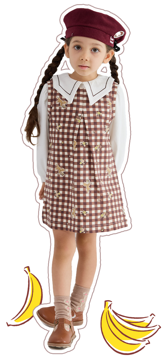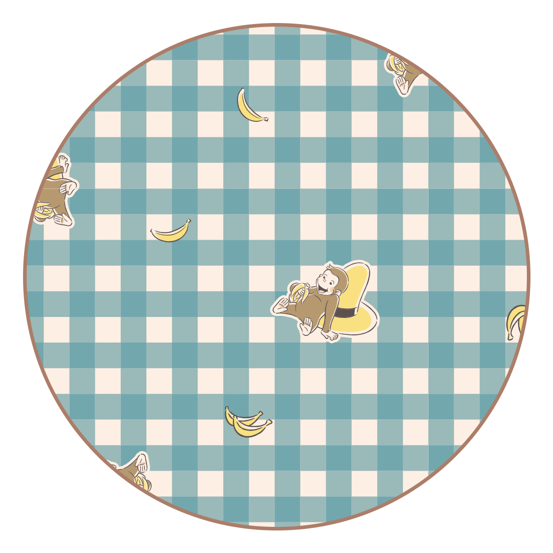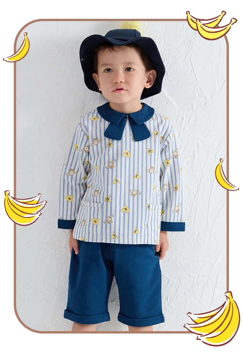 ジョージの大好物のバナナと黄色い帽子のカバーオール。