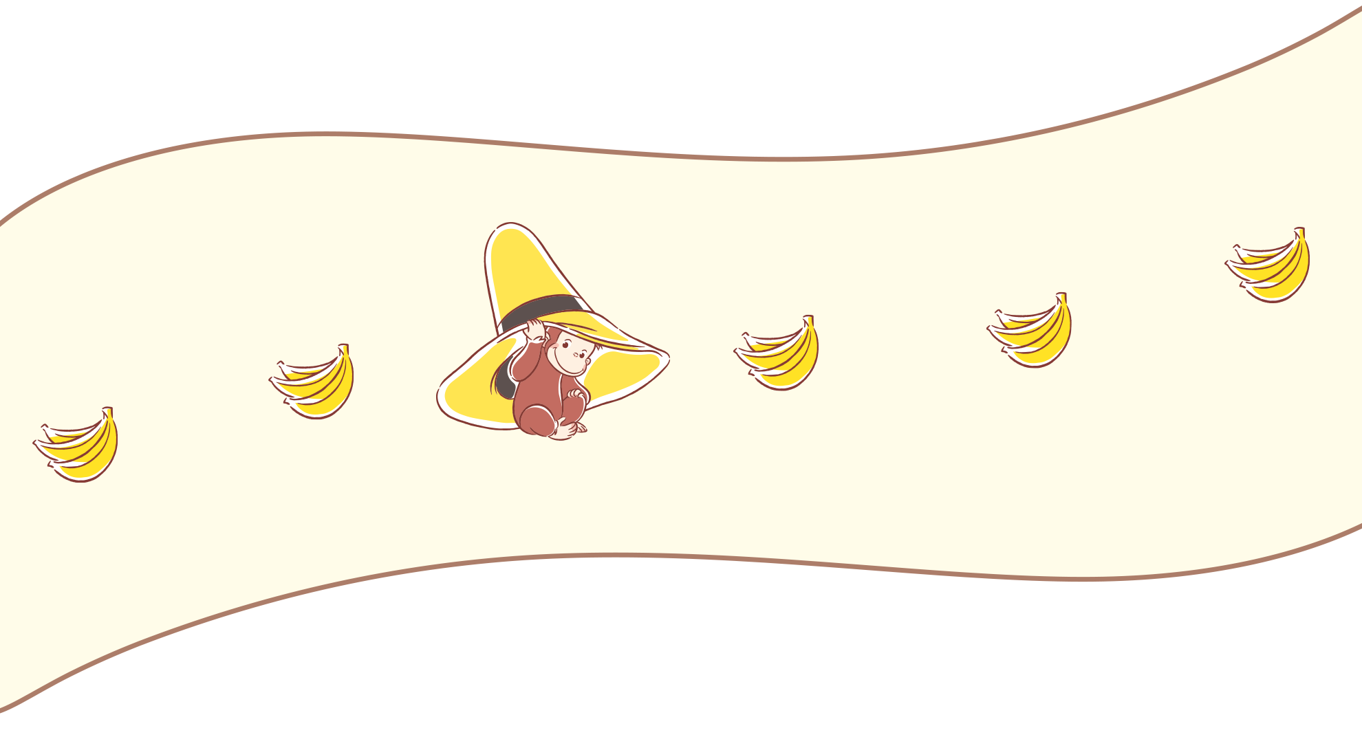 ジョージの大好物のバナナと黄色い帽子のセットアップ。