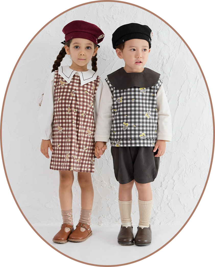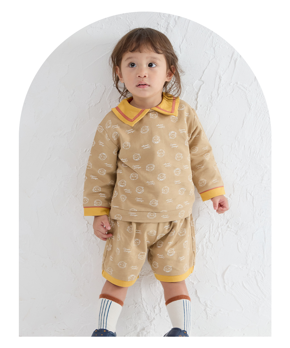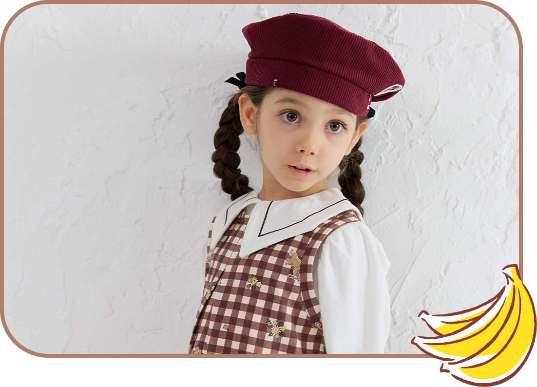 「キャンディカバーオール&帽子」のデザインをアレンジ。