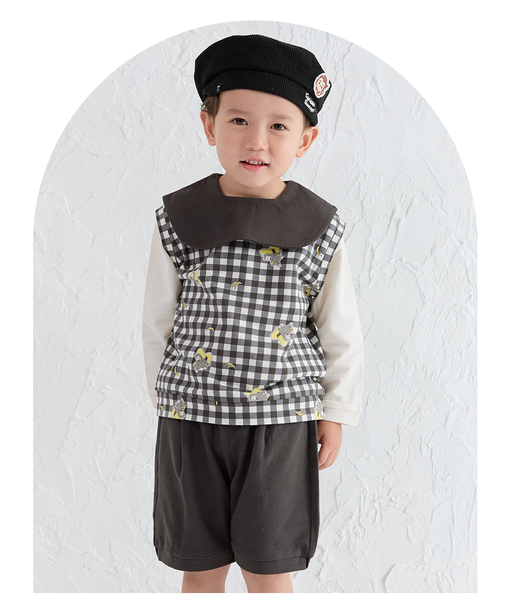 「チェック柄トップス&5分丈パンツ」のデザインをアレンジ。