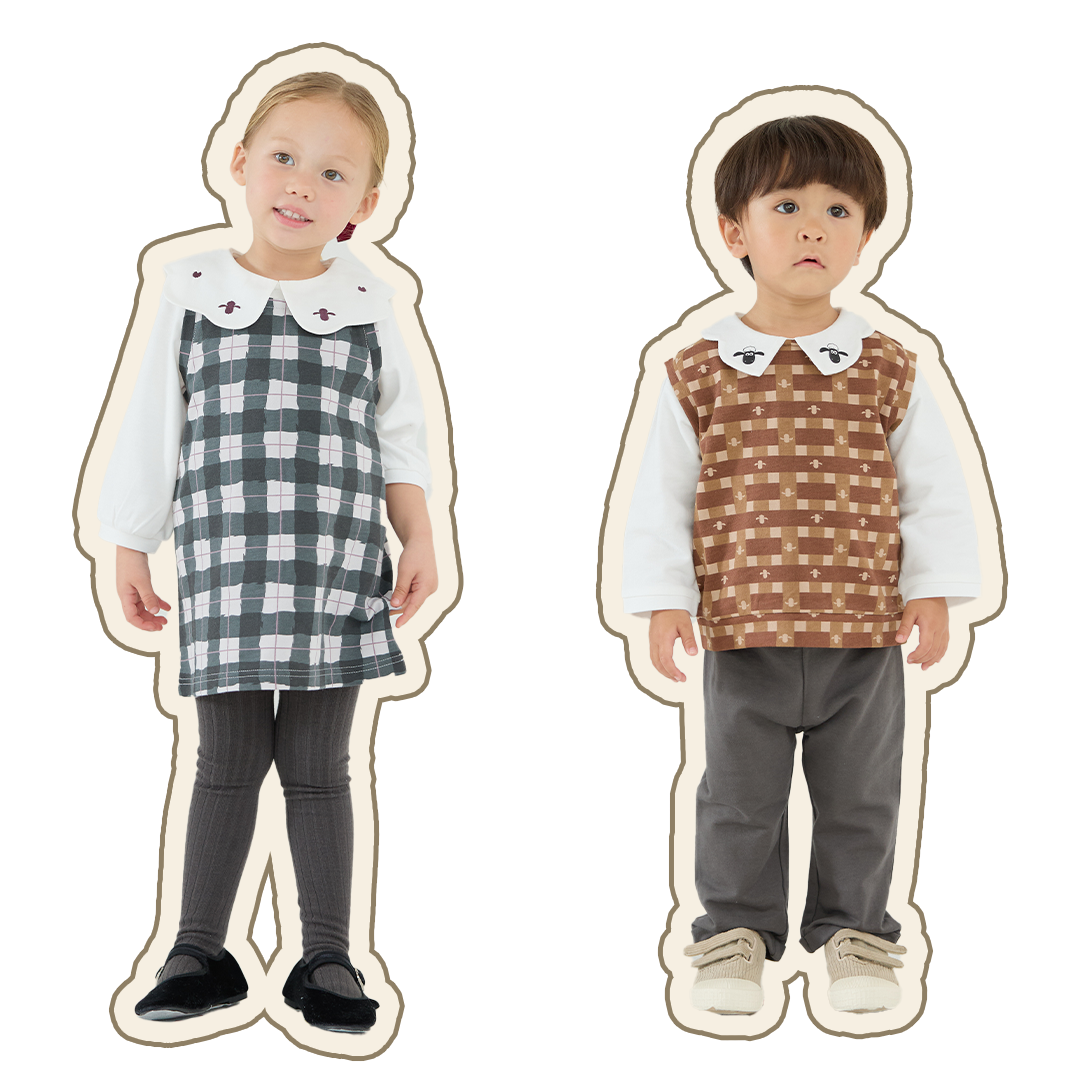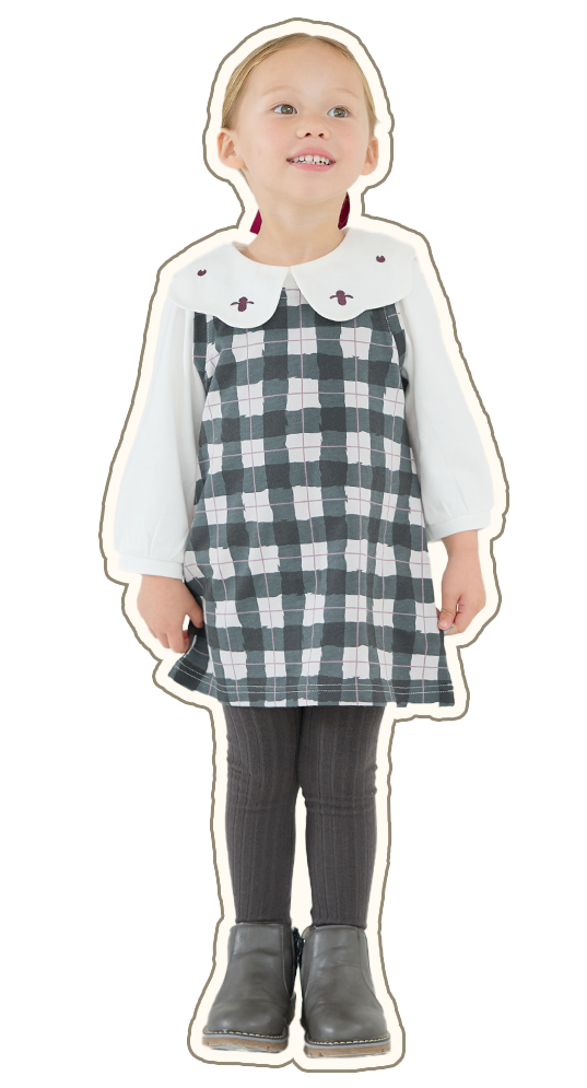 手書き調のクラシカルな雰囲気のチェック柄ワンピースと、