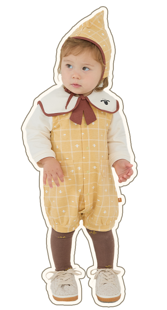 「アリスカバーオール」のデザインをアレンジしました。