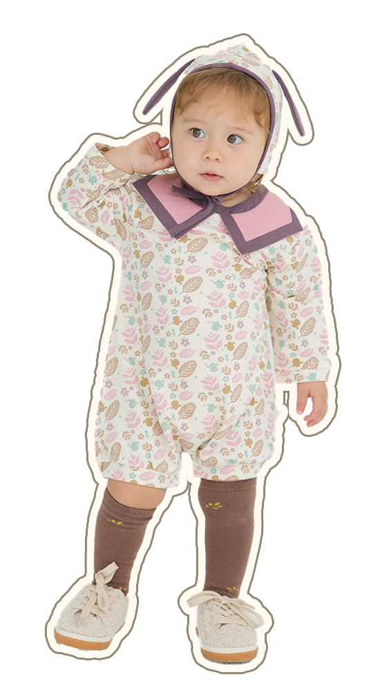 耳付きフルオープンカバーオール