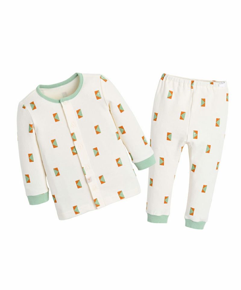 配色が可愛いルームウェアです。肌着を着てくれない時があるので、タグが外なのが嬉しいです。