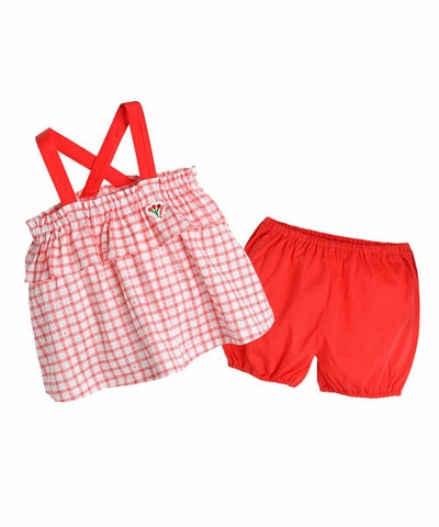 【セットアップ】レッドチェックノースリーブトップス&パンツ