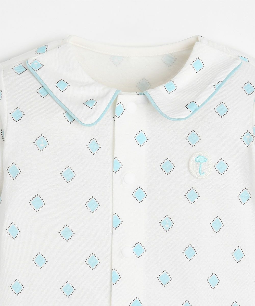 【ルームウェア】ブルーダイヤ柄長袖トップス&パンツ