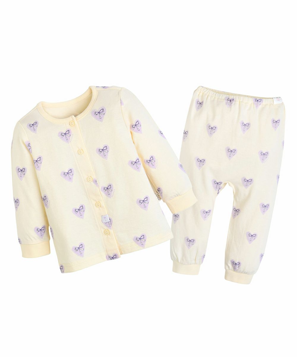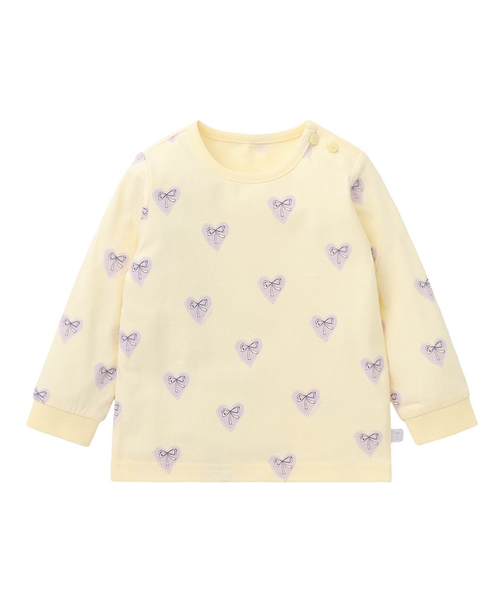 【ルームウェア】ハートリボン柄長袖トップス&パンツ