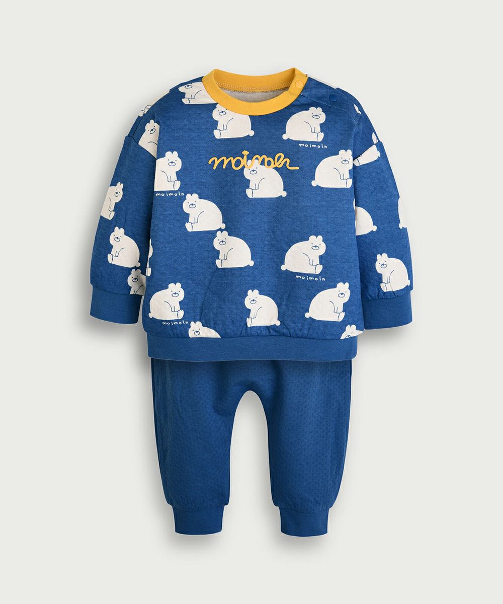 【ルームウェア】ビッグベアダブルフェイス長袖トップス&総柄パンツ