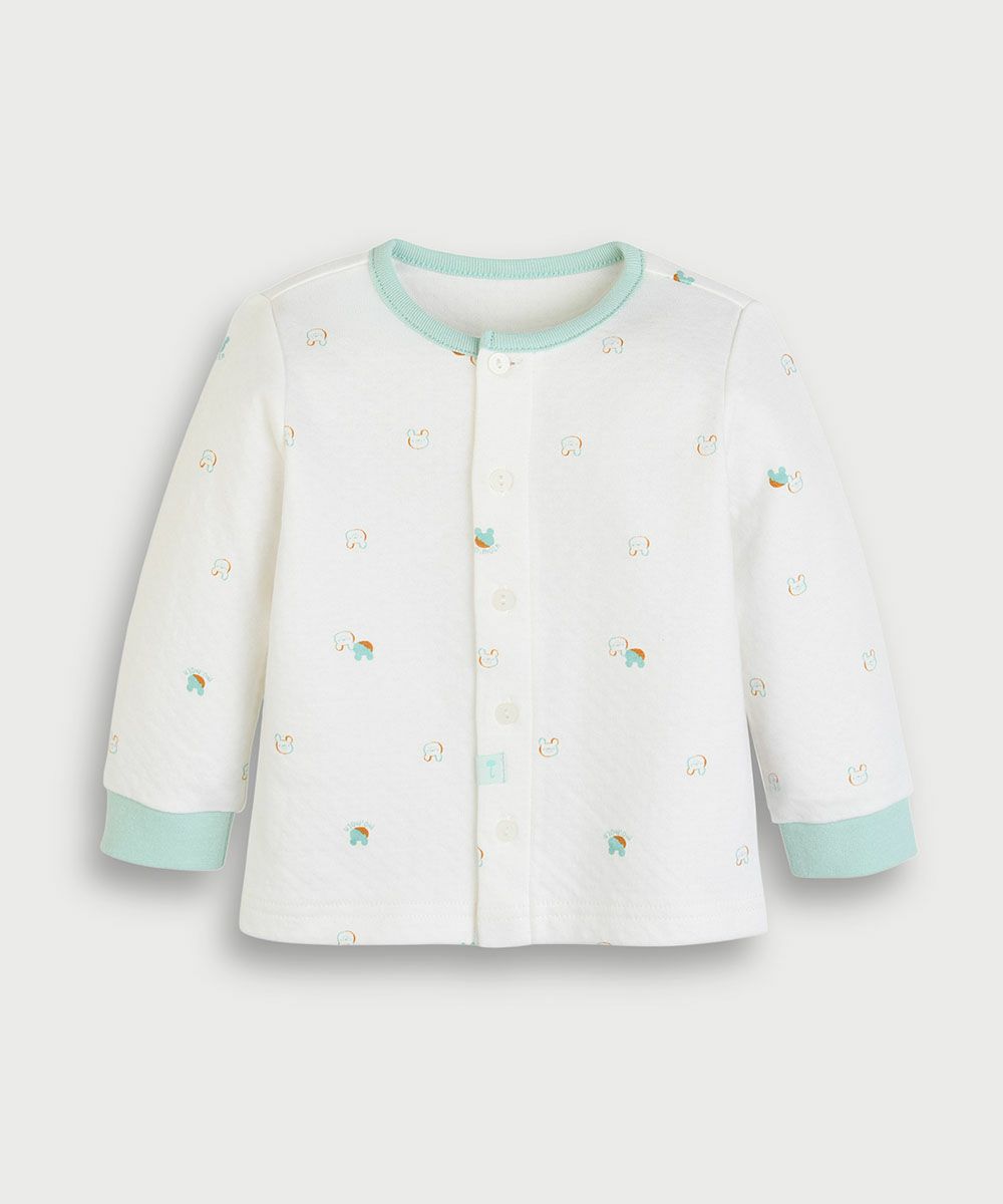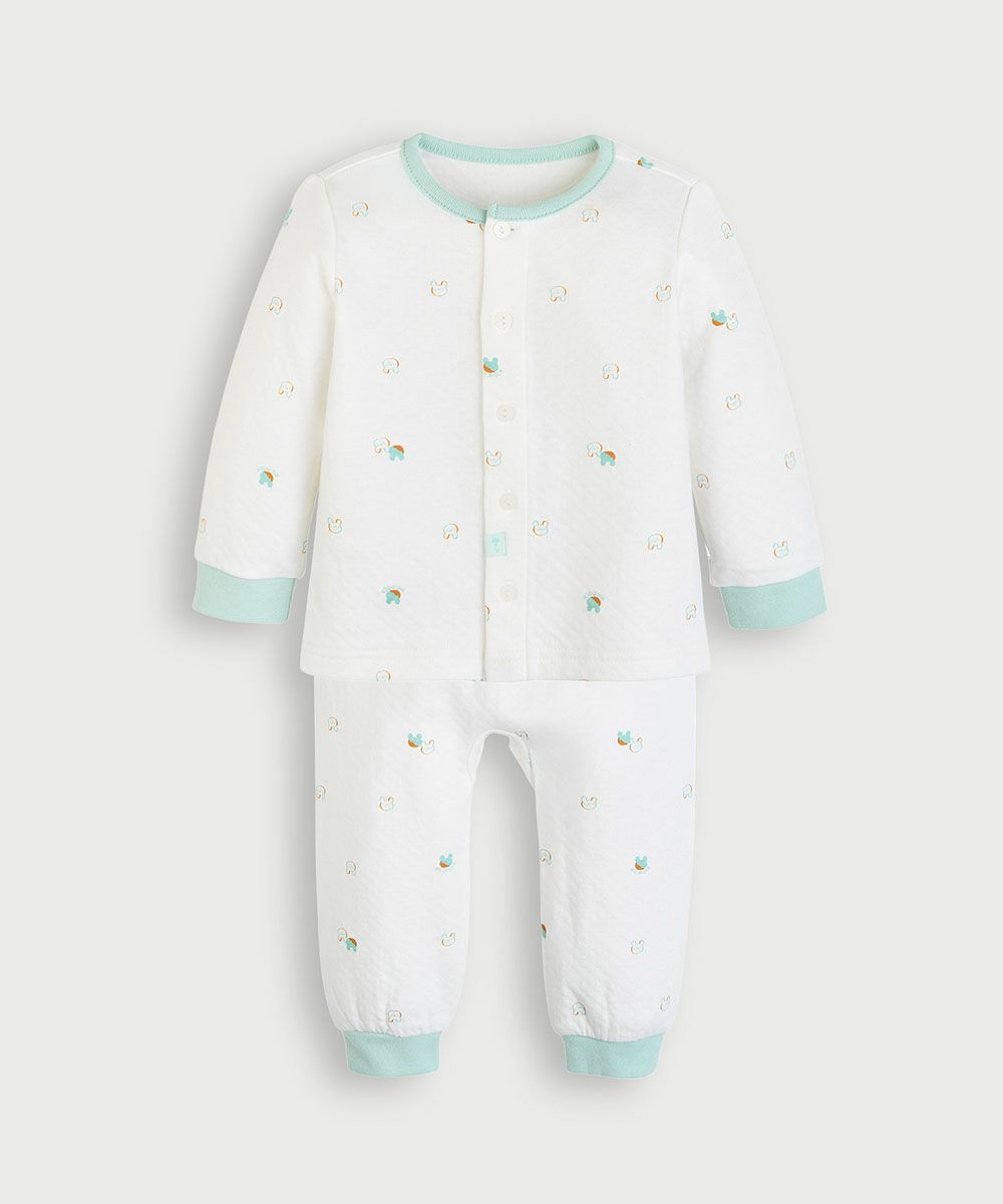 【ルームウェア】ベアコットン配色ミント長袖トップス&パンツ