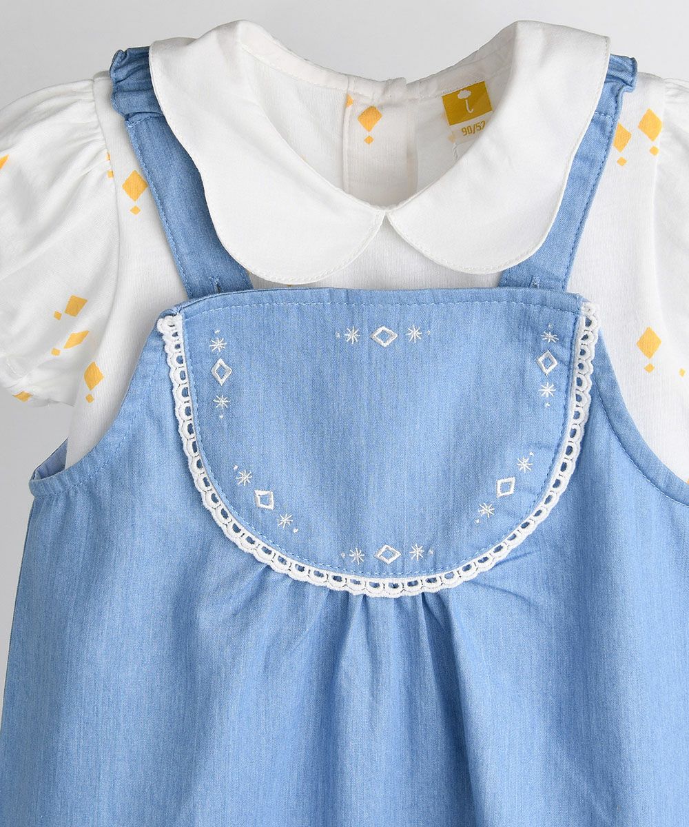 【モダールコットン】ブルーダイヤ柄ロンパース&帽子
